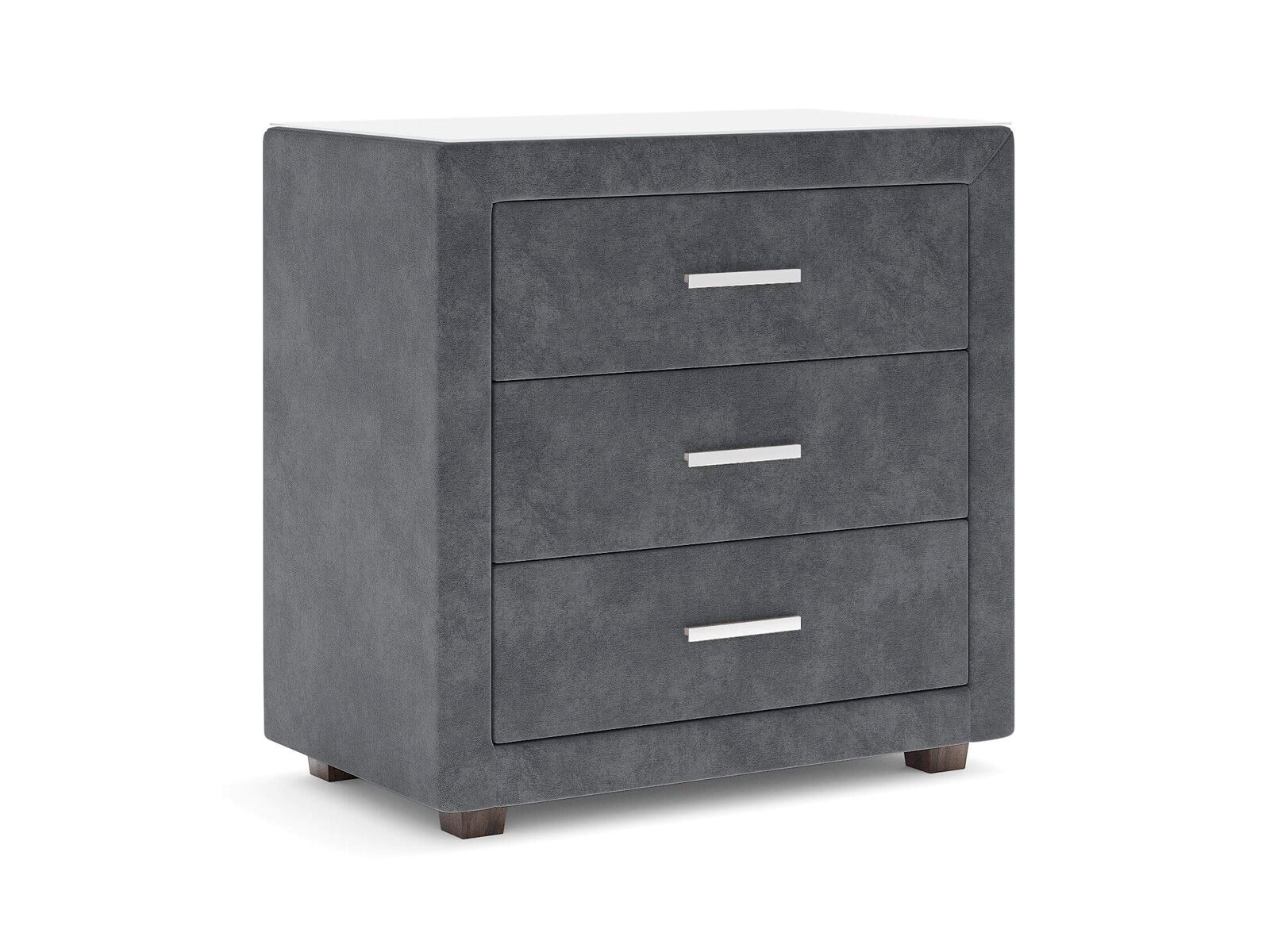 Элегантный комод отличается стильным дизайном и повышенным удобством. Три выдвижных ящика оснащены надёжными направляющими, обеспечивающими лёгкое открытие. Фасад ящиков и стенки комода покрыты обивочным материалом.