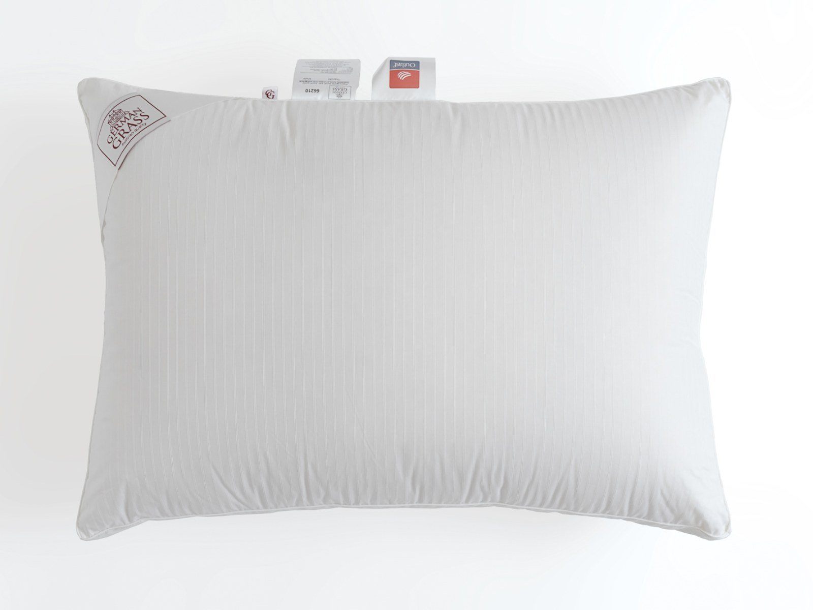 Объемные трехкамерные подушки «с бортиком» 3D Thermo Down Grass созданы специально для тех, кто ожидает от подушки не только правильной поддержки головы, но и поддержания комфортной температуры в этой области. Проактивное терморегулирование поверхности подушки основано на использовании ткани, в состав которой входят волокна Outlast®️*. Немецкий нежный батист (Nm60/40 TC234), сотканный из пряжи, состоящей на 64% из длинноволокнистого египетского хлопка и на 36% из Outlast®️, позволяет регулировать влажность с помощью гигроскопичных свойств хлопка и температуру посредством микрокапсул с воском, входящих в состав волокон Outlast®️. Микрокапсулы забирают и удерживают излишнее тепло, препятствуя перегреву и выделению влаги, и возвращают накопленное тепло обратно при снижении температуры, создавая постоянный комфортный микроклимат. При первичном контакте с тканью Outlast®️ возникает легкое ощущение прохлады за счет поглощения материалом тепла тела, и в течение пары минут материал адаптируется к температуре кожи и температура стабилизируется.