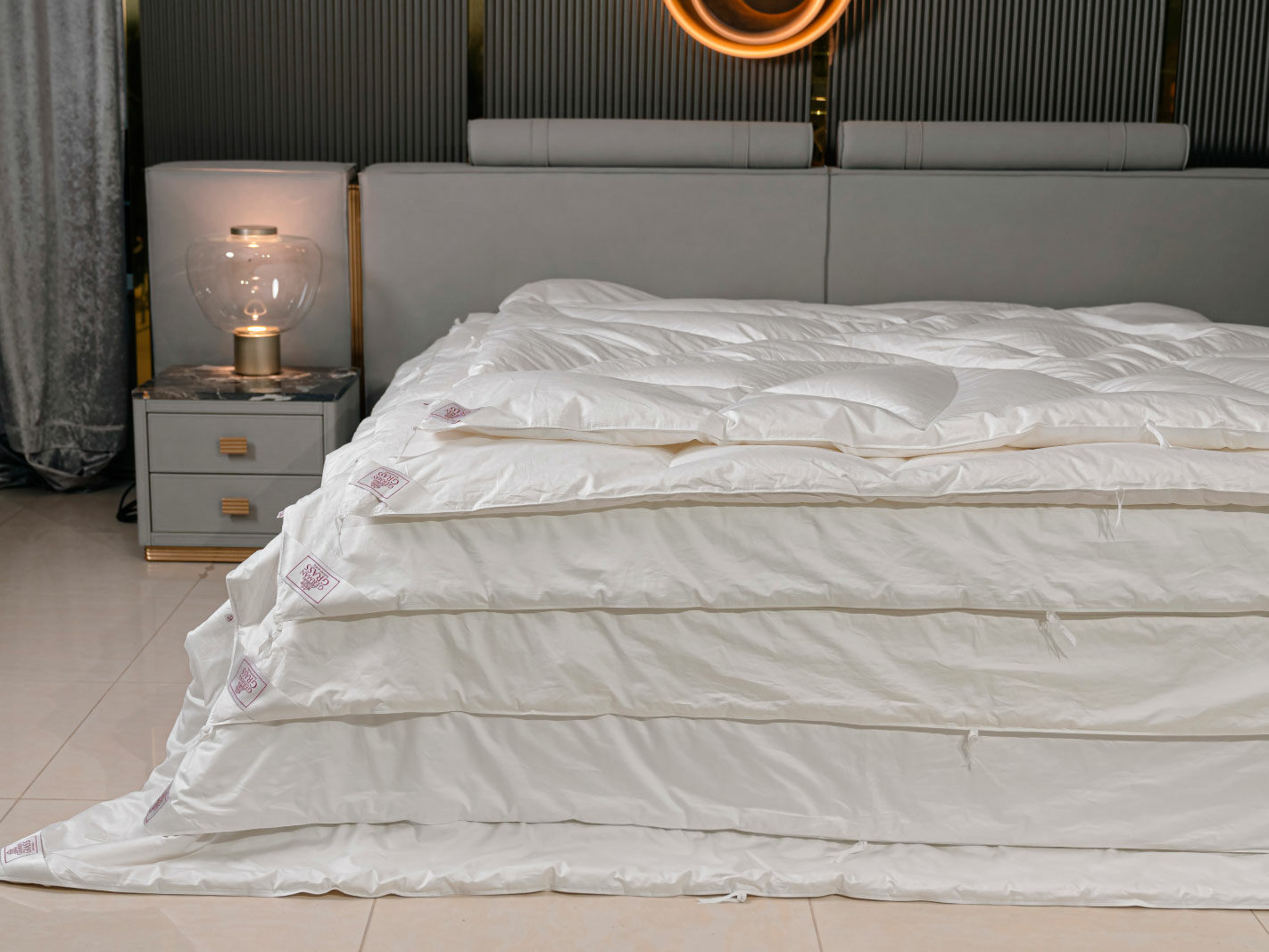 Альянс из всесезонного и всесезонного “Light” одеял с отборным гусиным пухом.