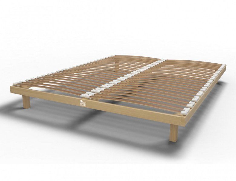 Основание выдерживает нагрузку 120 кг на одно спальное место. Это достигается благодаря прочному каркасу и прочных ножек, а также узким березовыми ламелями, расположенных на маленьком расстоянии между собой.