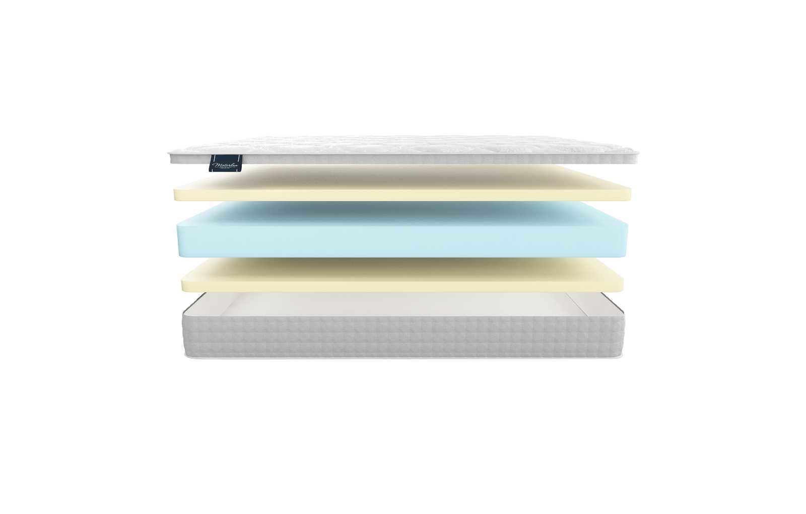 Если заглянуть под обивку матраса, то можно обнаружить, что он состоит из трёх слоёв. Самый толстый – это срединный блок пены Natural form. Сверху и снизу от него проложены более тонкие плиты Меморикса.