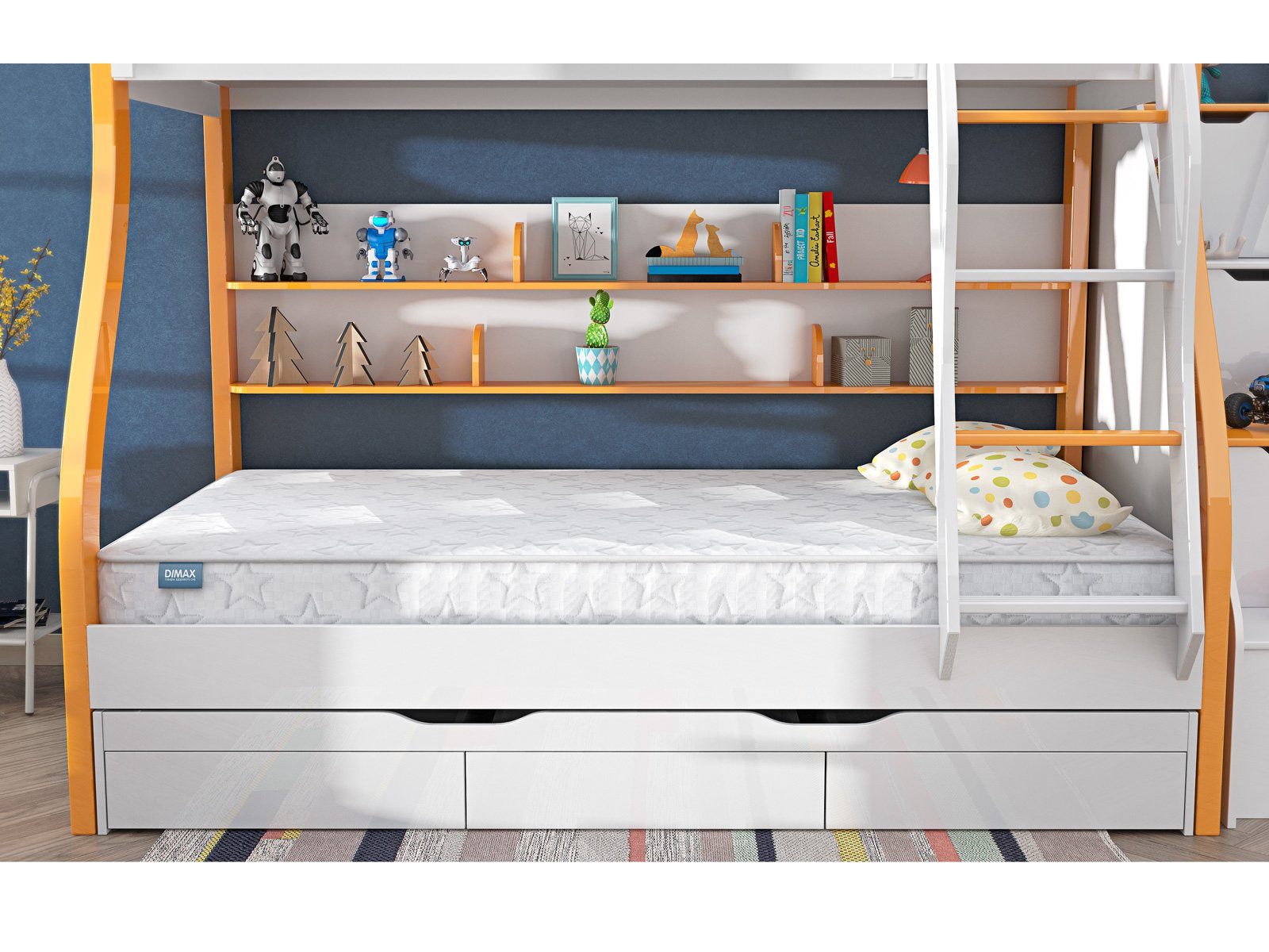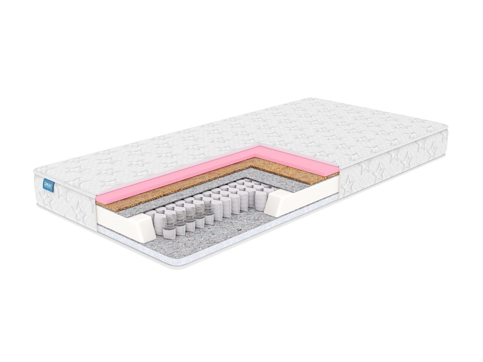 Димакс Звезда – это детский матрас на независимом пружинном блоке с двумя разными уровнями жёсткости: средним и чуть выше среднего. Благодаря качественным материалам и продуманной конструкции, модель выдерживает нагрузку до 80 кг на спальное место, поэтому рассчитана как на малышей, так и на подростков.