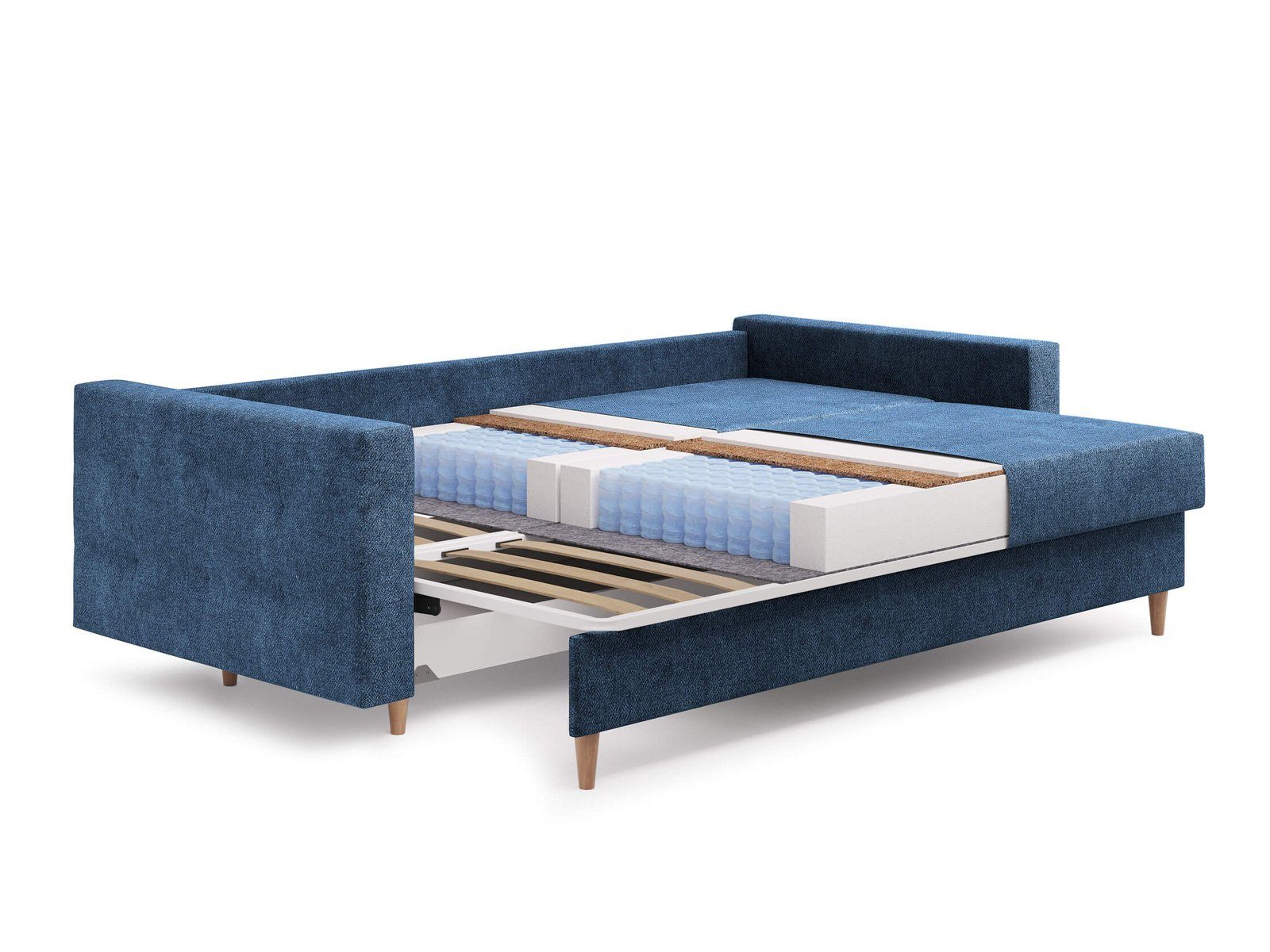Современный диван Scandy с механизмом трансформации «Пантограф». В основе дивана полноценный ортопедический матрас на независимом пружинном блоке, усиленном слоем натуральной латексированной кокосовой коры. Комфортная глубина и высота сиденья обеспечит ежедневный комфорт. Задняя спинка защищает от прикосновения со стеной во сне, а стену – от возможных повреждений и загрязнений. В основе мягких подушек – микс наполнителей: поролоновая крошка защищает от деформации, а синтетическое волокно добавляет мягкость и упругость – для бережной поддержки спины. Подушки убираются во вместительный бельевой ящик с вентиляционным отверстием в разложенном состоянии дивана. Высокие элегантные опоры из массива (цвет на выбор - бук или венге) упростят уборку и позволяют работать современным роботам-пылесосам.