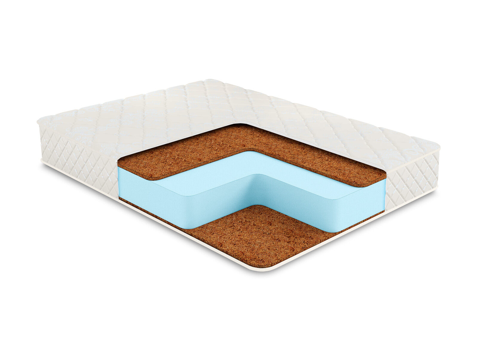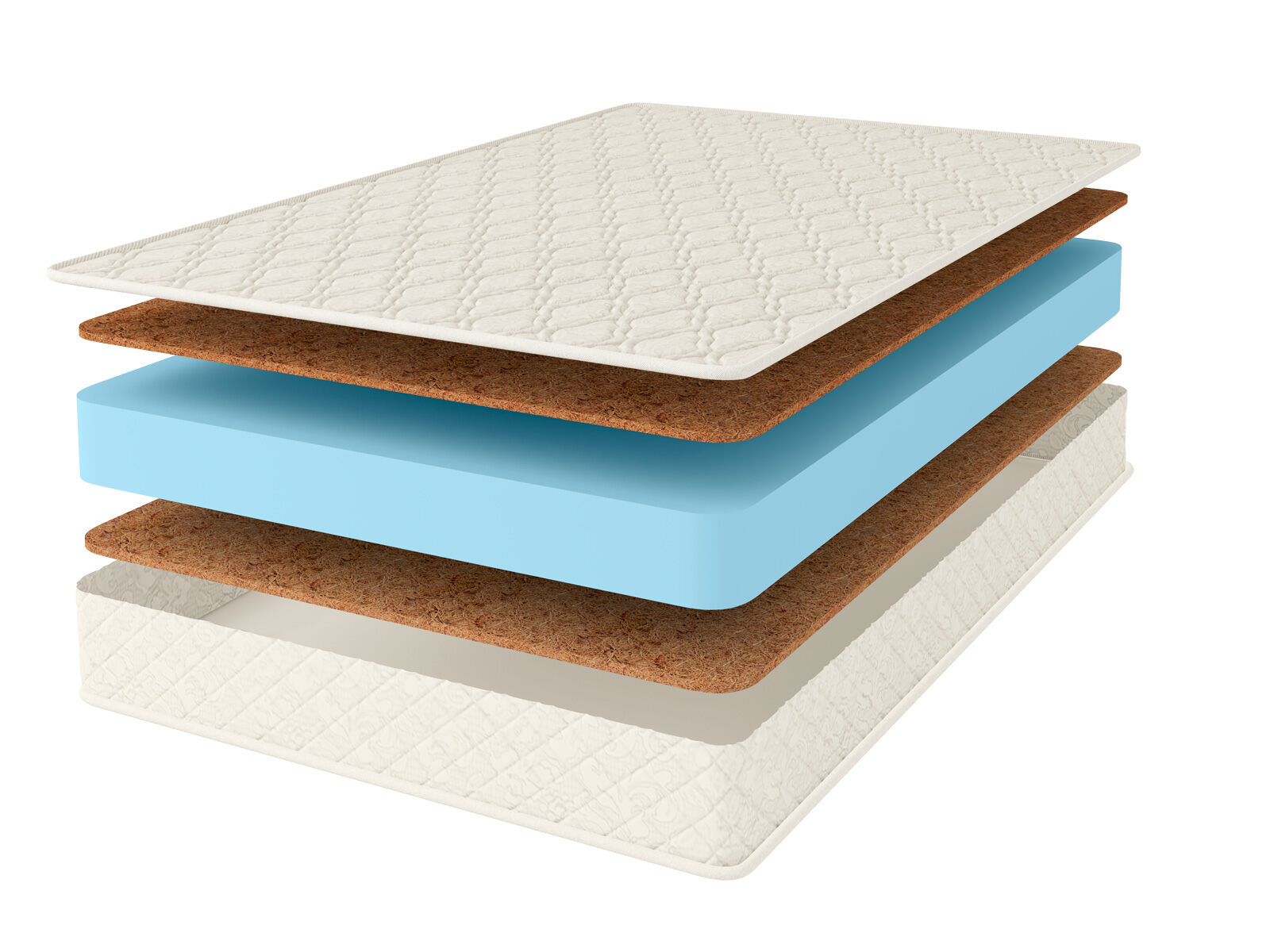 Сверху и снизу от ППУ установлены слои кокосовой койры. Этот натуральный материал передаёт поверхностям жёсткость и ортопедические качества. Именно он удерживает позвоночник в правильном положении, благодаря чему вы сохраните красивую и здоровую осанку.