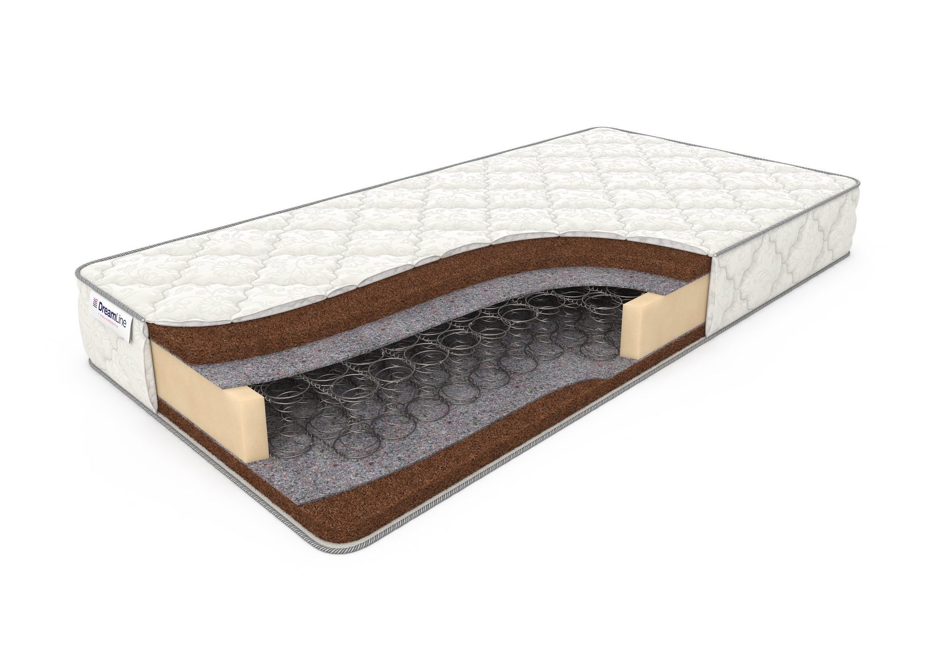 Dream 3 BS - это жесткий матрас на основе блока Bonnel - конструкции, в которой пружины соединены между собой: при надавливании на одну из них прогибаются и соседние. С обеих сторон блок защищен прочным плотным термовойлоком, увеличивающим срок его службы. В качестве наполнения для данной модели выбрана латексированная кокосовая койра, трехсантиметровые слои которой расположены с каждой стороны. Именно этот прочный и долговечный материал обеспечивает высокую жесткость матраса и его ортопедические свойства. Высота матраса Dream 3 BS составляет 20 см, он выдерживает до 100 кг нагрузки. Чехол изготовлен из хлопкового жаккарда, простеганного на антиаллергенном холконе 200 гр./м2. По желанию в него бесплатно можно вшить смотровую молнию.