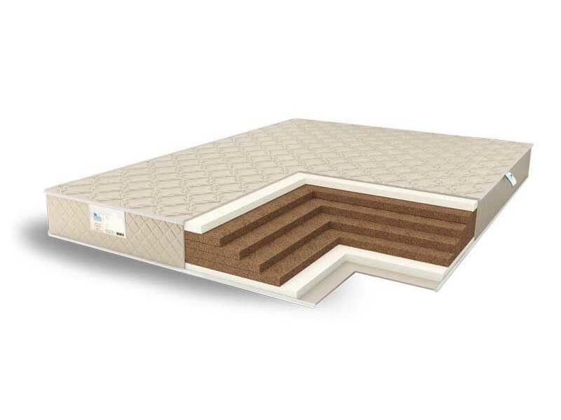 Изделие базируется на очень толстом блоке кокоса, который берёт на себя основную нагрузку. Жёсткость наполнителя позволяет прекрасно удерживать спину человека в анатомически правильном положении А благодаря тому, что плиты прогибаются в стратегически необходимых местах и подстраиваются под изгибы фигуры, матрас приобретает ортопедические свойства.
