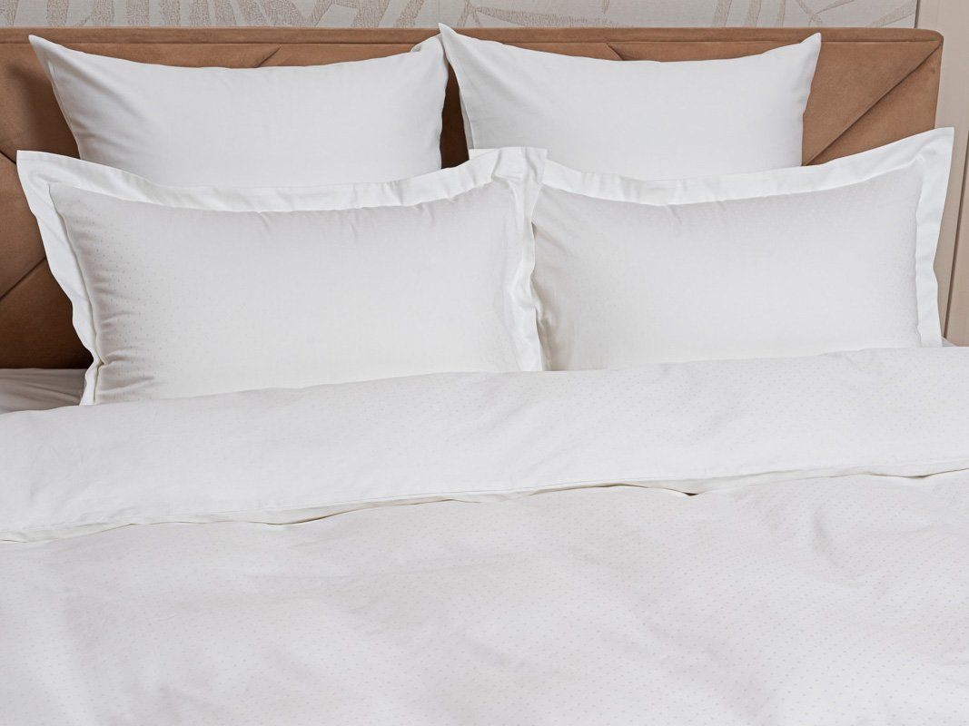 Простыня классическая, наволочки "оксфордские" с ушками на запахе (50x70), наволочки классические без декоративных элементов на запахе (70x70), пододеяльник с потайной молнией.