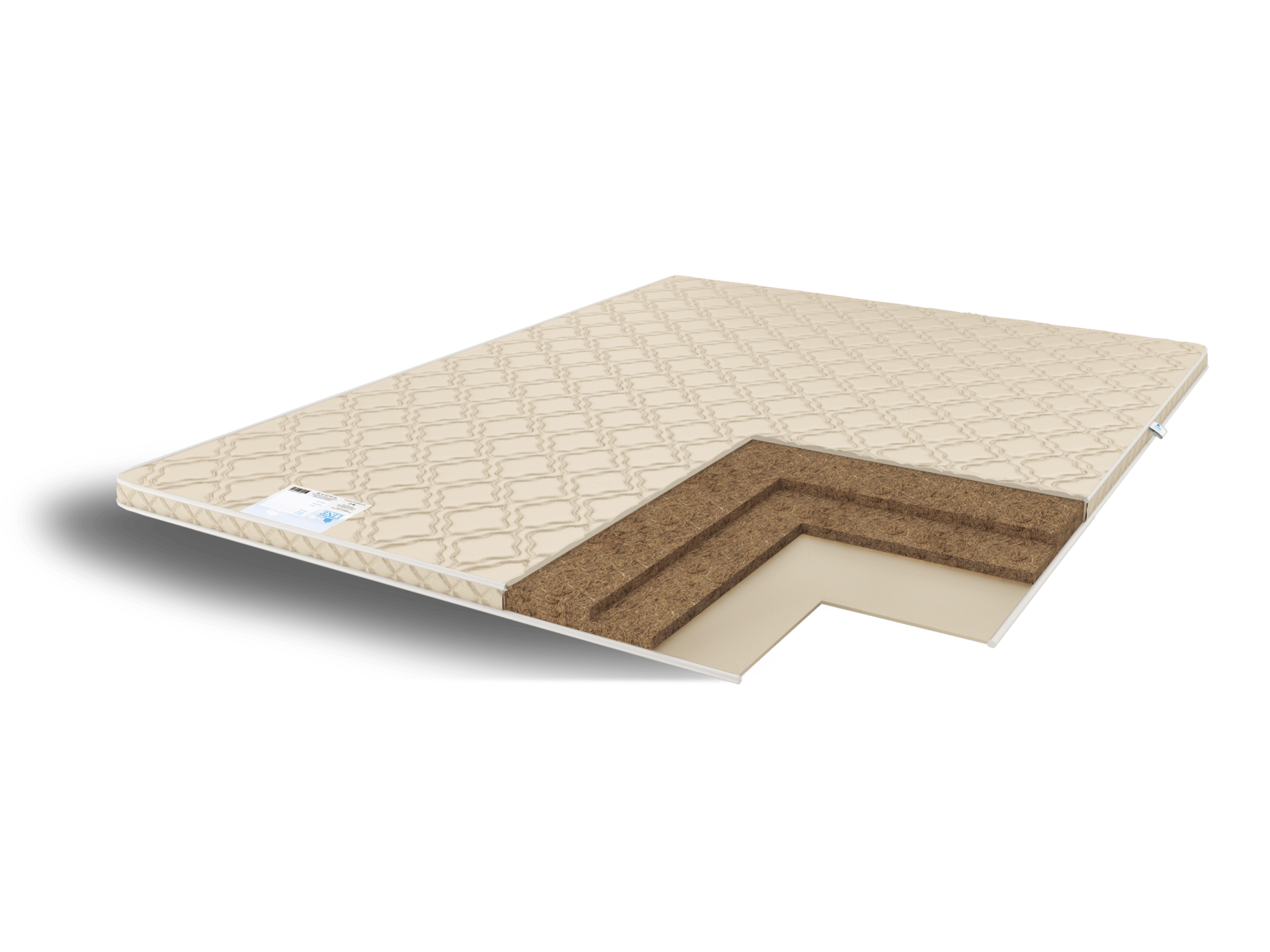 Жесткий наматрасник из кокосовой койры. Модель станет отличным решением, если вы хотите сделать свое спальное место немного выше и ровнее. Латексированный кокос – природный антисептик, обладает высокими антибактериальными свойствами. Благодаря высокой жесткости способен скрыть неровности базового матраса или дивана. Практичный жакккардовый чехол простеган на холлконе (200 гр). Съемная обивка придает наматраснику красивый внешний вид и дополнительный уют. Для крепления по углам наматрасника предусмотрены 4 эластичные резинки. Высота 4 см.