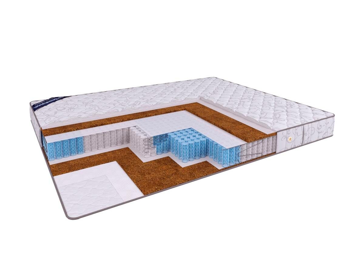 Жёсткий двусторонний матрас Hit Cocos S1200 выполнен на основе пружинного блока "Мультипакет" (1200 пружин на спальное место) и натурального кокосового волокна. Пять различных зон жёсткости пружинного блока соответствуют различным зонам тела человека, обеспечивая оптимальную анатомическую поддержку, равномерное распределение веса тела и нахождение позвоночника в естественном положении. Благодаря несимметричной конструкции матрас имеет немного различающуюся жёсткость сторон, позволяющую Вам подобрать для себя более комфортную сторону матраса.