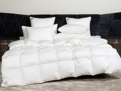 Немецкий хлопковый сатин высочайшей плотности соткан из тончайших нитей (Premium Satin – Nе 200/200 485 ТС) и прошел финишную обработку SanProCare® Sensitive, обеспечивающую усиленную гигроскопичность и придающую ей «пуховую мягкость». Особо тонкий, мягкий и «нешуршащий» чехол обладает повышенной износостойкостью и предотвращает проникновение пылевых клещей внутрь изделий. Наполнителем служит пух высочайшего качества, отобранный на гусиных фермах Сибири, которая, по утверждению биологов, является зоной проживания гусей, носящих пух максимально больших размеров, что, безусловно, влияет на пуховую массу положительно и наполнитель имеет повышенный коэффициент упругости (Fill Power), достигающий значений в 850 ед.