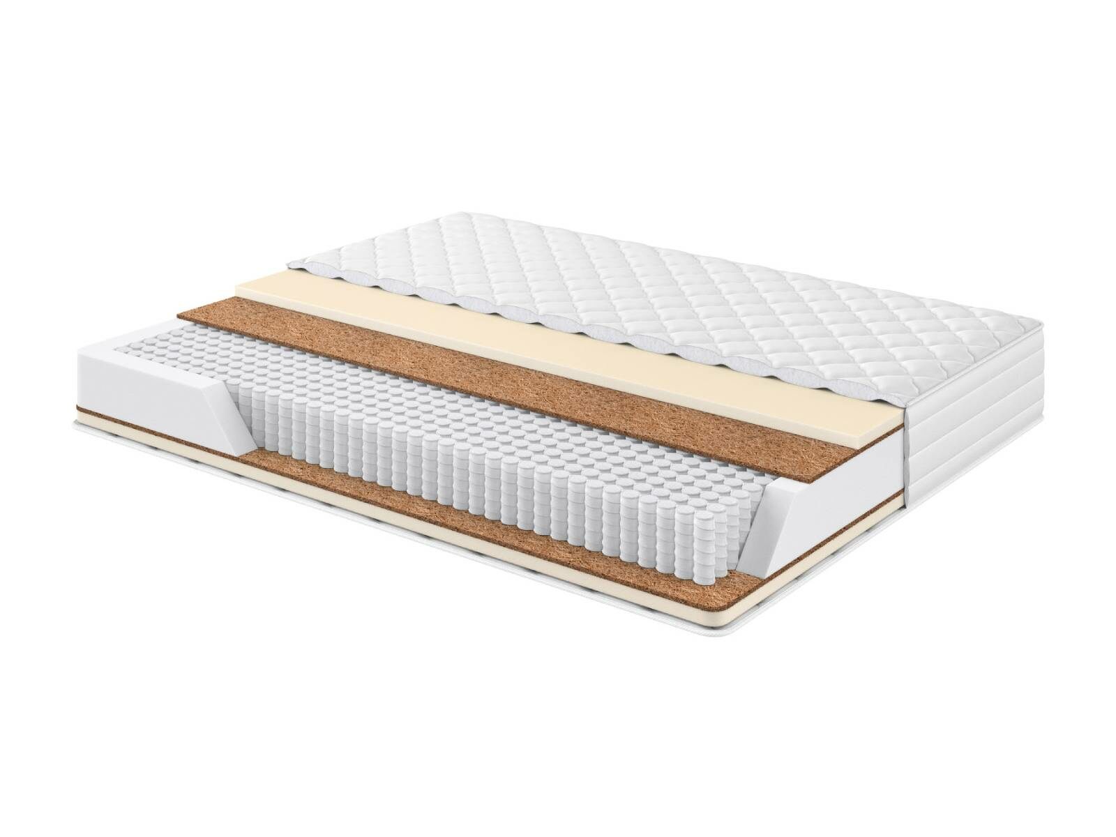 Кокосовая койра латексированная. Экологически чистый, долговечный природный материал, получаемый из межплодника ореха кокосовой пальмы, произрастающей в тропических районах Юго-Восточной Азии. Будучи натуральным материалом, койра, тем не менее, не вызывает аллергических реакций, и наоборот, выросшее под солнцем тропиков, кокосовое волокно впитало в себя огромный запас энергии, которая создает на много лет мощное благотворное биополе. В качестве наполнителя для матрасов кокосовая койра обеспечивает оптимальную упругость и долговечность матраса. Для устранения ломкости и увеличения срока эксплуатации, кокосовое волокно пропитывают латексом. На выходе получается монолитная плита: прочная и долговечная. Латексная пропитка позволяет выдерживать большие нагрузки и препятствует деформации и расслаиванию наполнителя.
