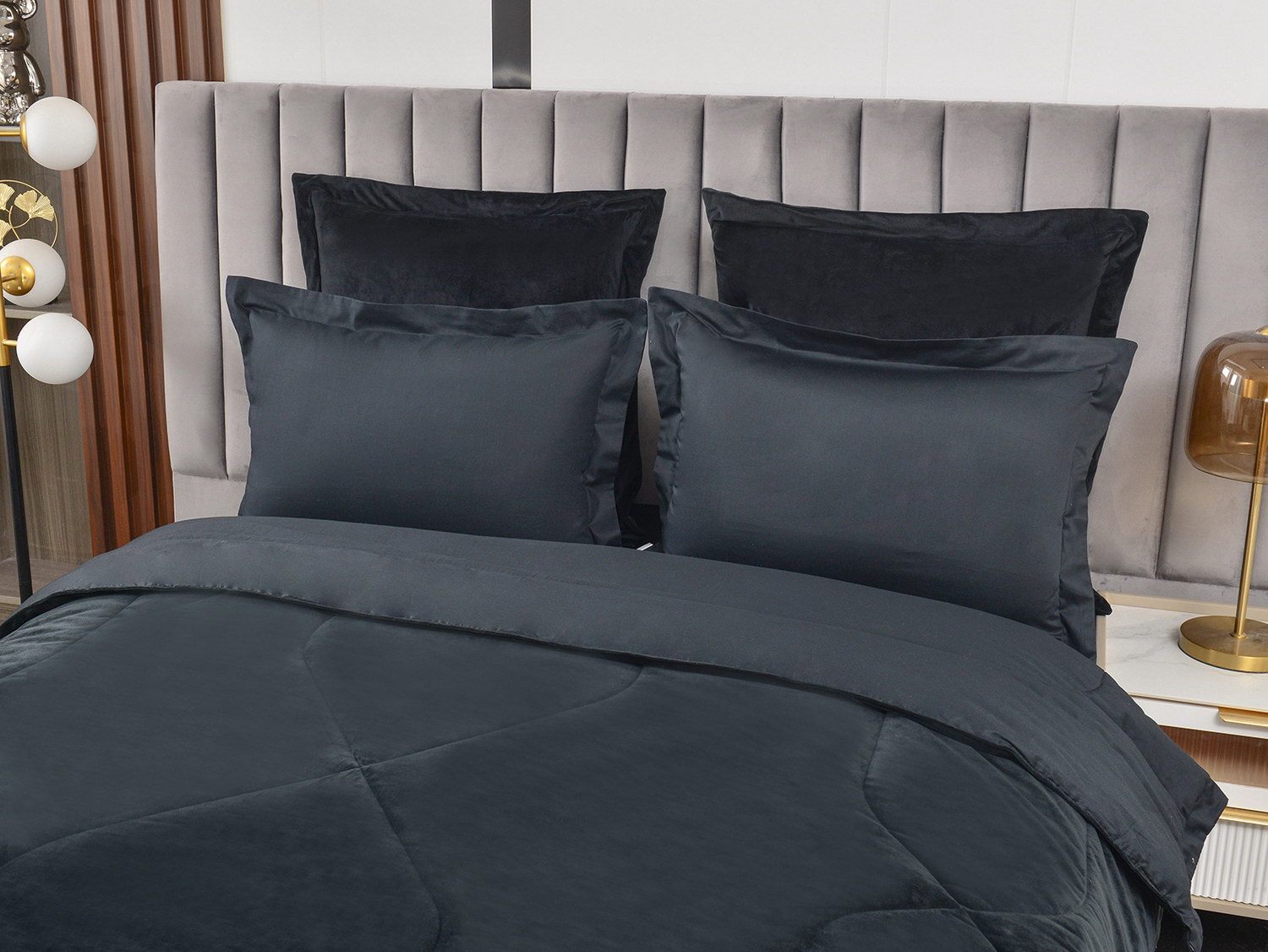 Изготовленный из качественной вискозы и мягкого хлопка трендовых цветов, комплект создаёт приятное ощущение на коже. Его экологичное наполнение из 100% эковолокна обеспечивает гипоаллергенные свойства, подарив вам спокойные и уютные ночи.