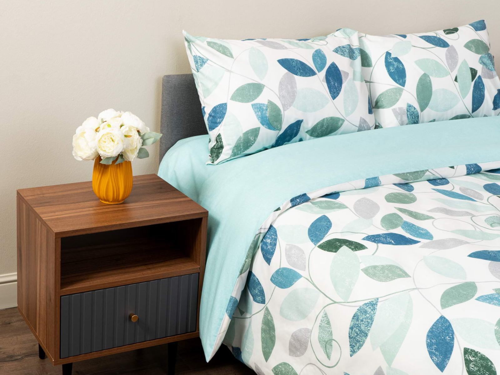 Комплект изготовлен из ранфорса, такая ткань отвечает всем современным стандартам и по уровню комфорта не уступает сатину. Ранфорс долговечен, лёгок и приятен на ощупь.