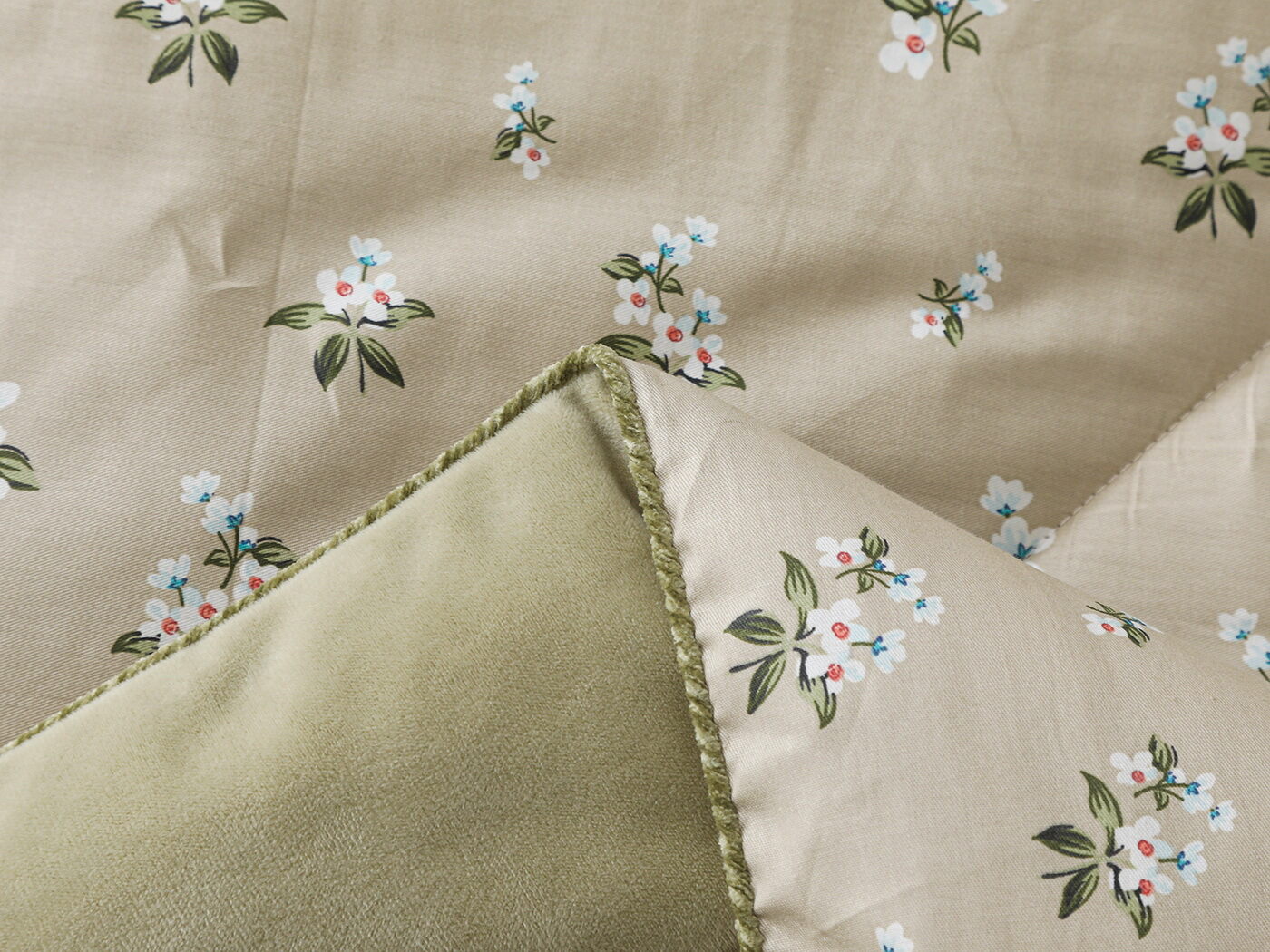 Обратная сторона одеяла – принтованный сатин натуральный хлопковый материал. На ощупь нежная и шелковистая, при этом комфортная и прочная ткань.