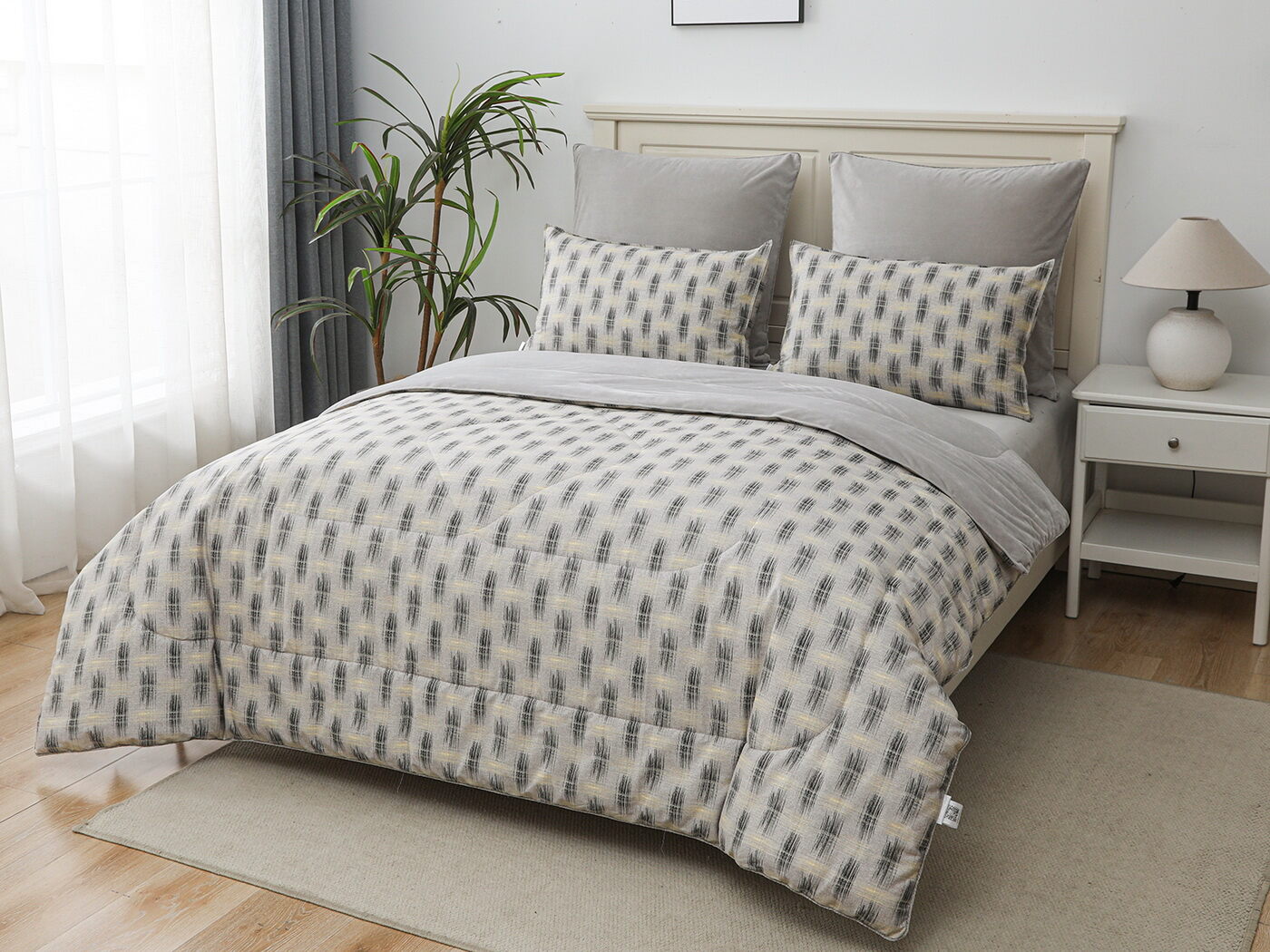 Обратная сторона одеяла – принтованный сатин натуральный хлопковый материал. На ощупь нежная и шелковистая, при этом комфортная и прочная ткань.