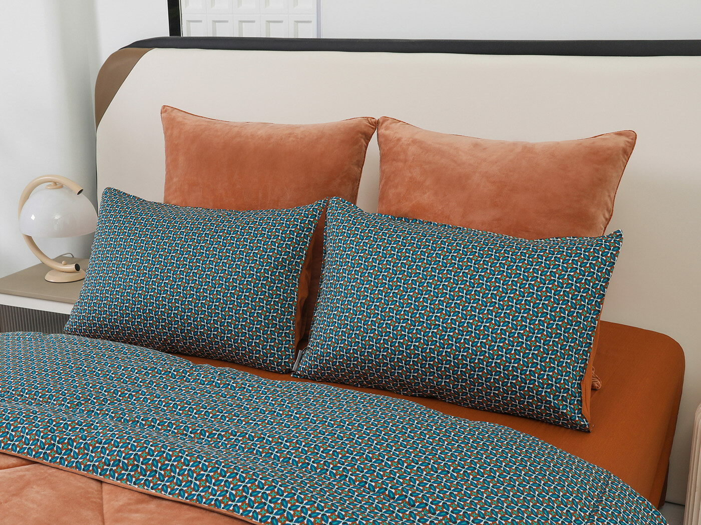 Обратная сторона одеяла – принтованный сатин натуральный хлопковый материал. На ощупь нежная и шелковистая, при этом комфортная и прочная ткань.