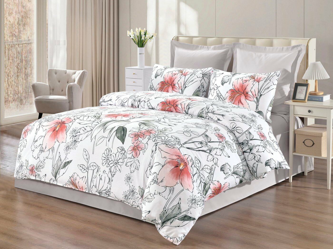Пошив: пододеяльник на пуговицах, наволочки с клапаном.