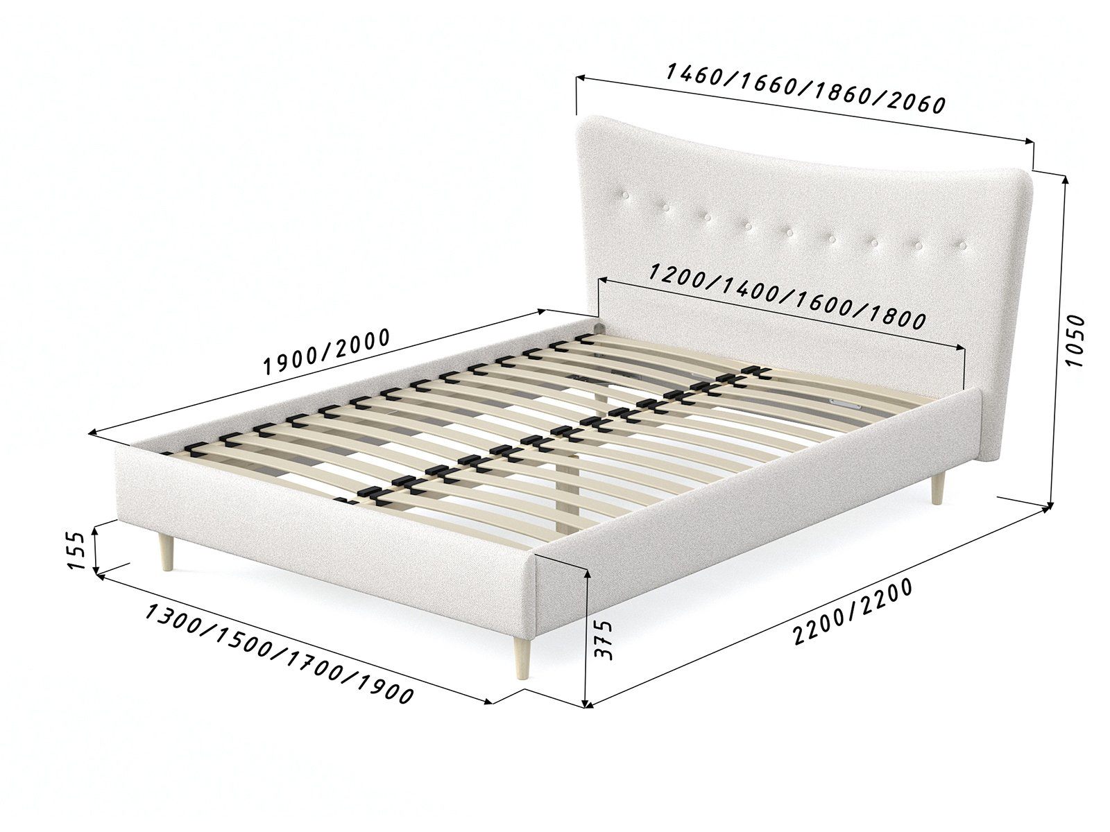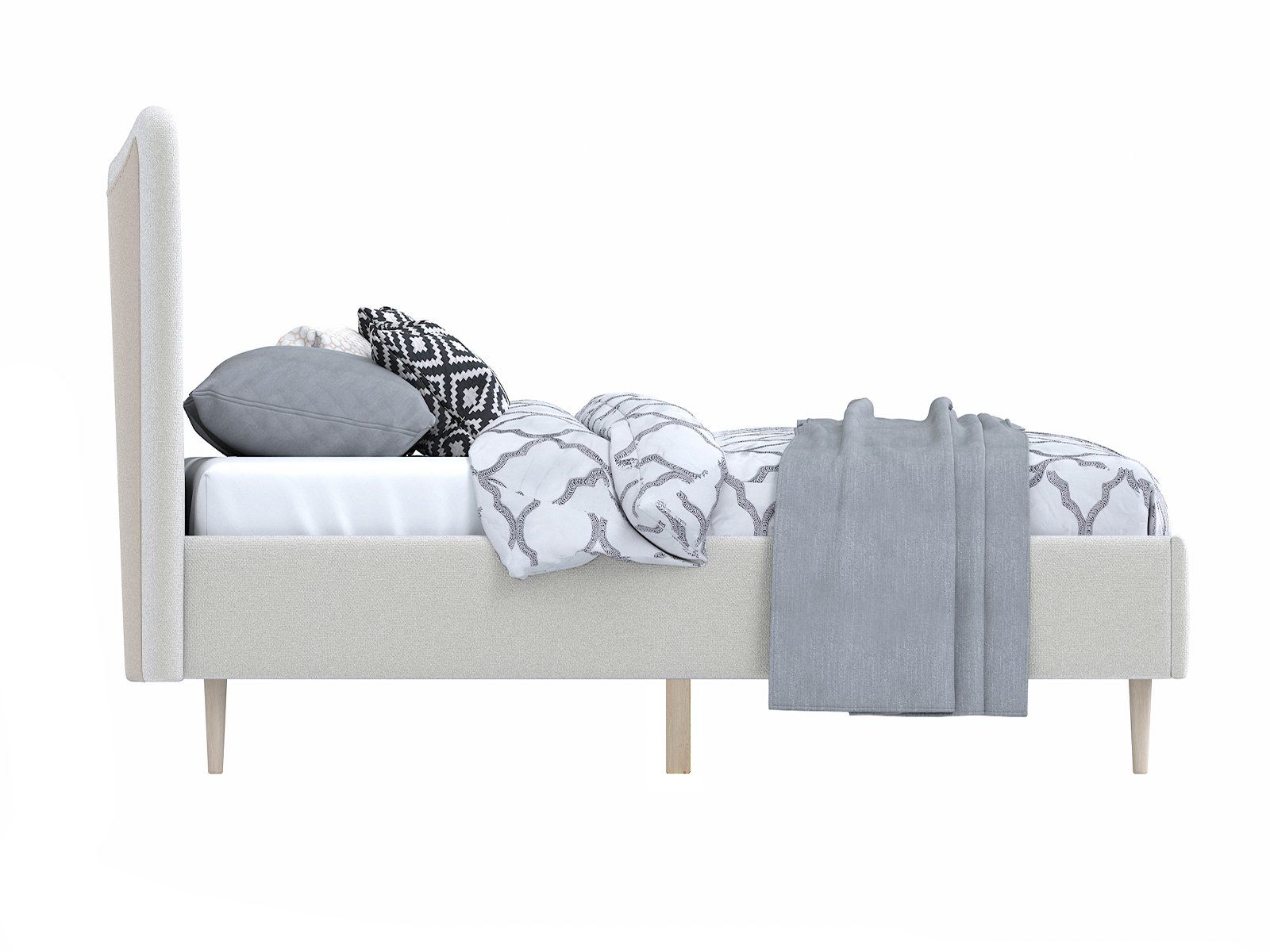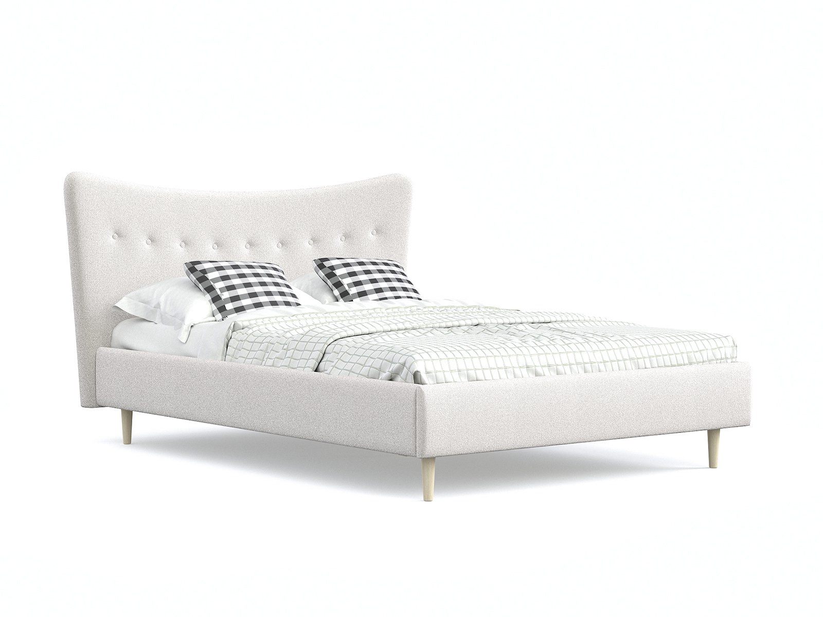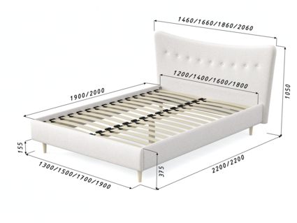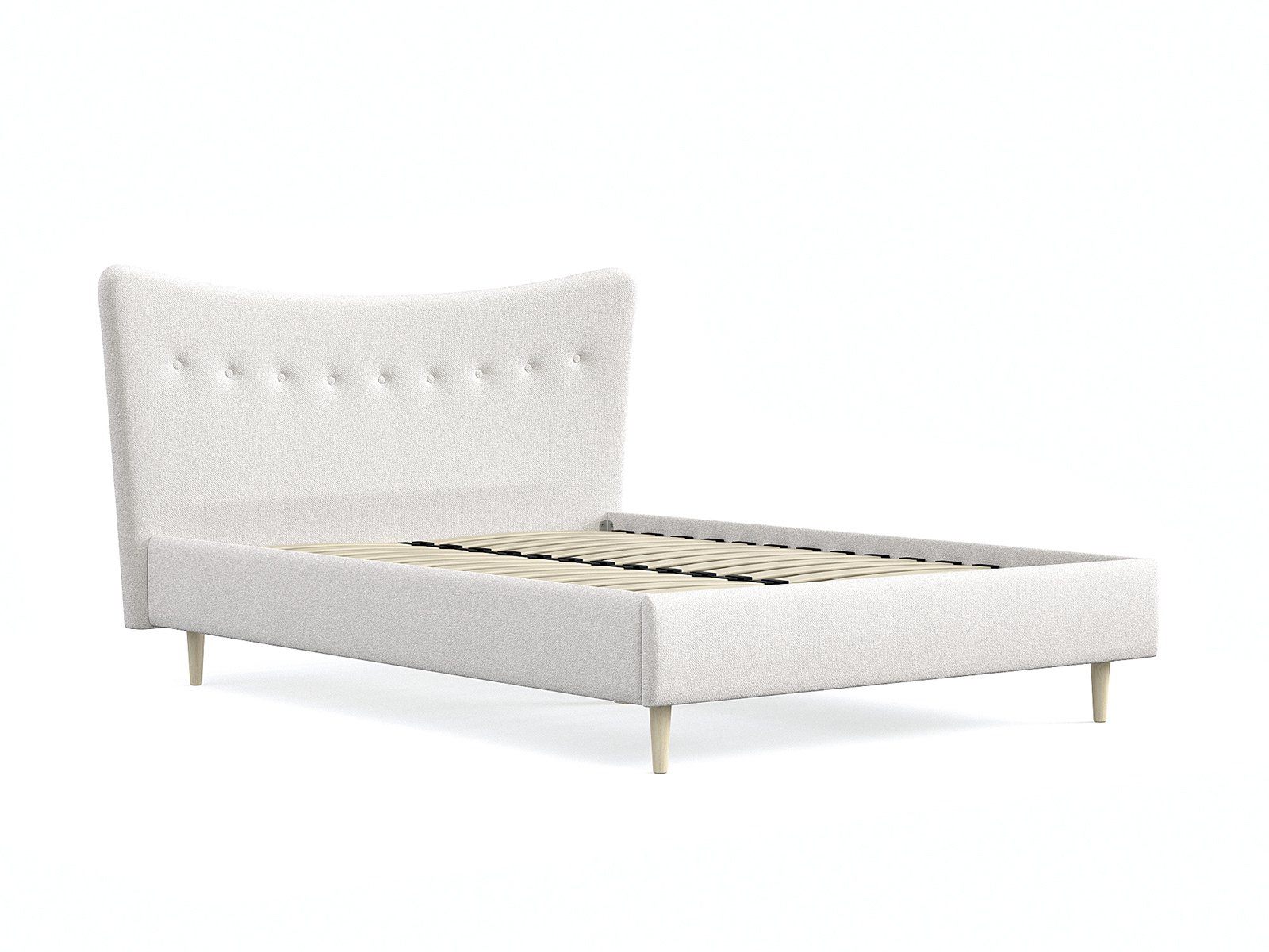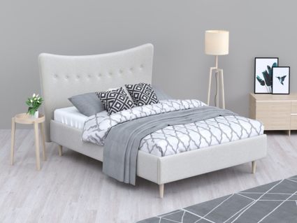 Кровать «Финна» станет оригинальным дополнением любой современной спальни благодаря своему минималистичному дизайну. Модель будет прекрасно сочетаться с окружением в стиле лофт, сканди или даже прованс. Декоративная утяжка на спинке предохраняет обивку от чрезмерного растяжения. Высокие деревянные ножки не только придают кровати визуальной легкости, но и облегчают уборку, в том числе с помощью робота-пылесоса. Каркас из массива сосны отличается высокой прочностью и длительным сроком эксплуатации.