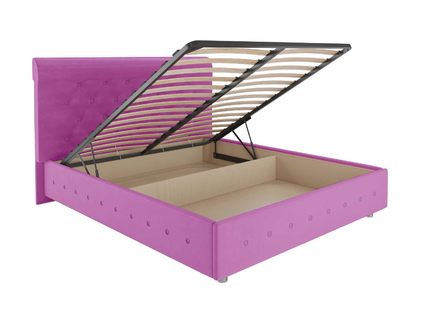 Кровать комплектуется основанием с подъемным механизмом. При желании основание всегда можно поднять и получить доступ к вместительному бельевому ящику. Это дополнительная система для хранения постельных принадлежностей. Она позволит разгрузить шкаф и спрятать сезонные вещи.