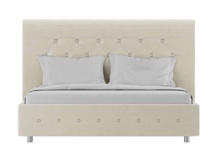 Кровать Андрия отличается изящным изголовьем. Его украшает аккуратная каретная стёжка с пуговицами, обтянутыми тканью в тон к основной обивке. Модель имеет лаконичный дизайн, который будет уместен в современном интерьере. Периметр кровати также оформлен аккуратной стёжкой, вторящей спинке кровати.