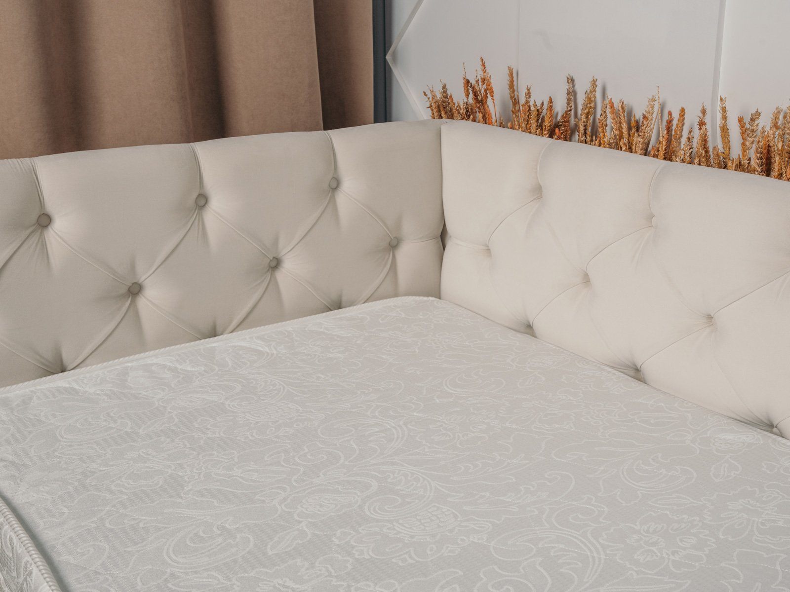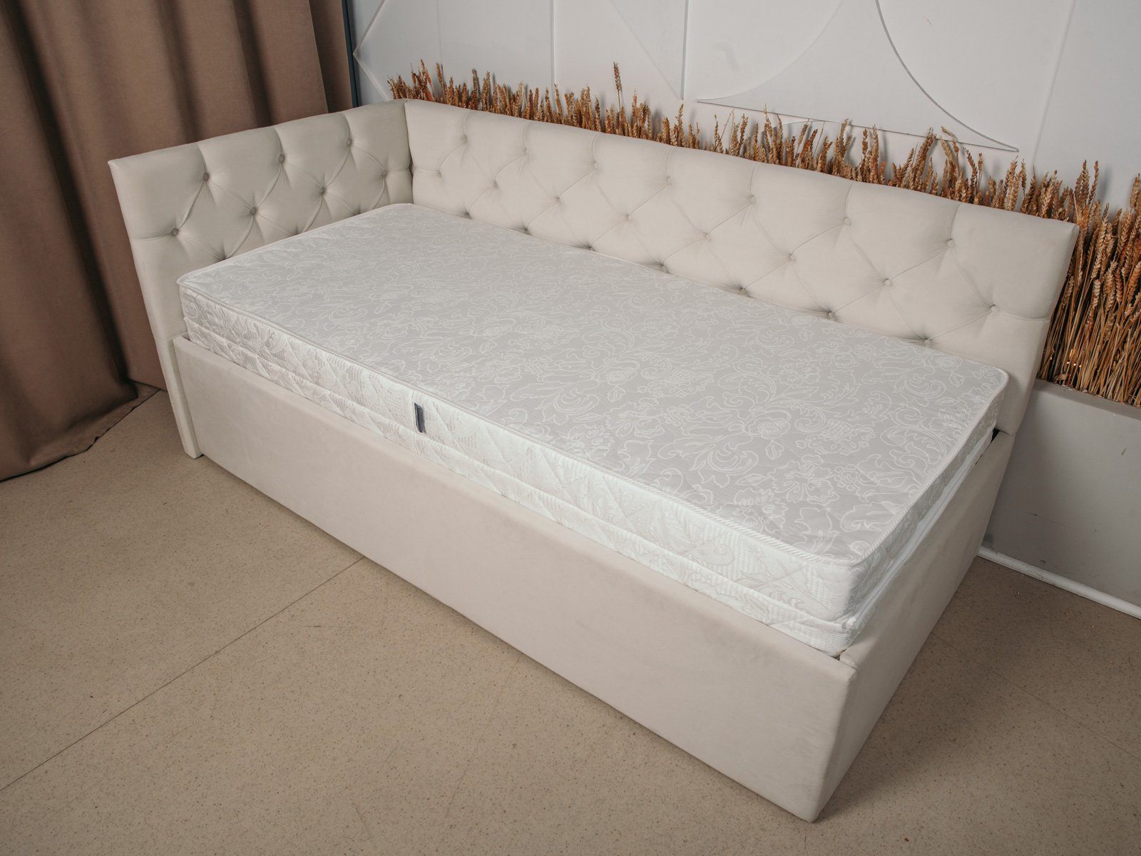 Кровать Бриони обладает элегантным лаконичным дизайном и изящно впишется в детскую комнату, спальню или гостиную. Модель можно использовать в том числе как диван, поскольку она оснащена уютным угловым изголовьем. Спинка мебели получила мягкую стёжку, оформленную каретной стяжкой. Пуговицы обтянуты той же тканью, что и основное изделие. Угловая структура кровати позволяет существенно сэкономить пространство и обеспечить при этом комфортный отдых.