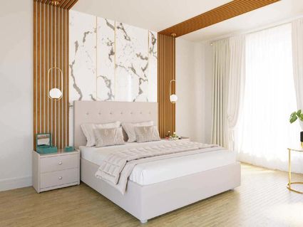 Кровать комплектуется встроенным основанием (буковая или металлокаркассная рама).