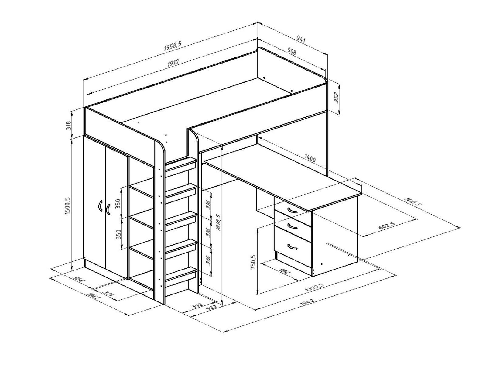 Кровать-чердак Теремок-3 представляет собой самодостаточный комплекс включающий в себя зону для сна, шкаф и полноценный рабочий стол. Прочная конструкция рассчитана на детей от 3 до 16 лет. Такая детская обеспечит разумную экономию пространства в вашем доме и полностью обеспечит выполнение всех многообразных функций детской и подростковой комнаты. Детская является универсальной, т.к. направление детской определяется при сборке.