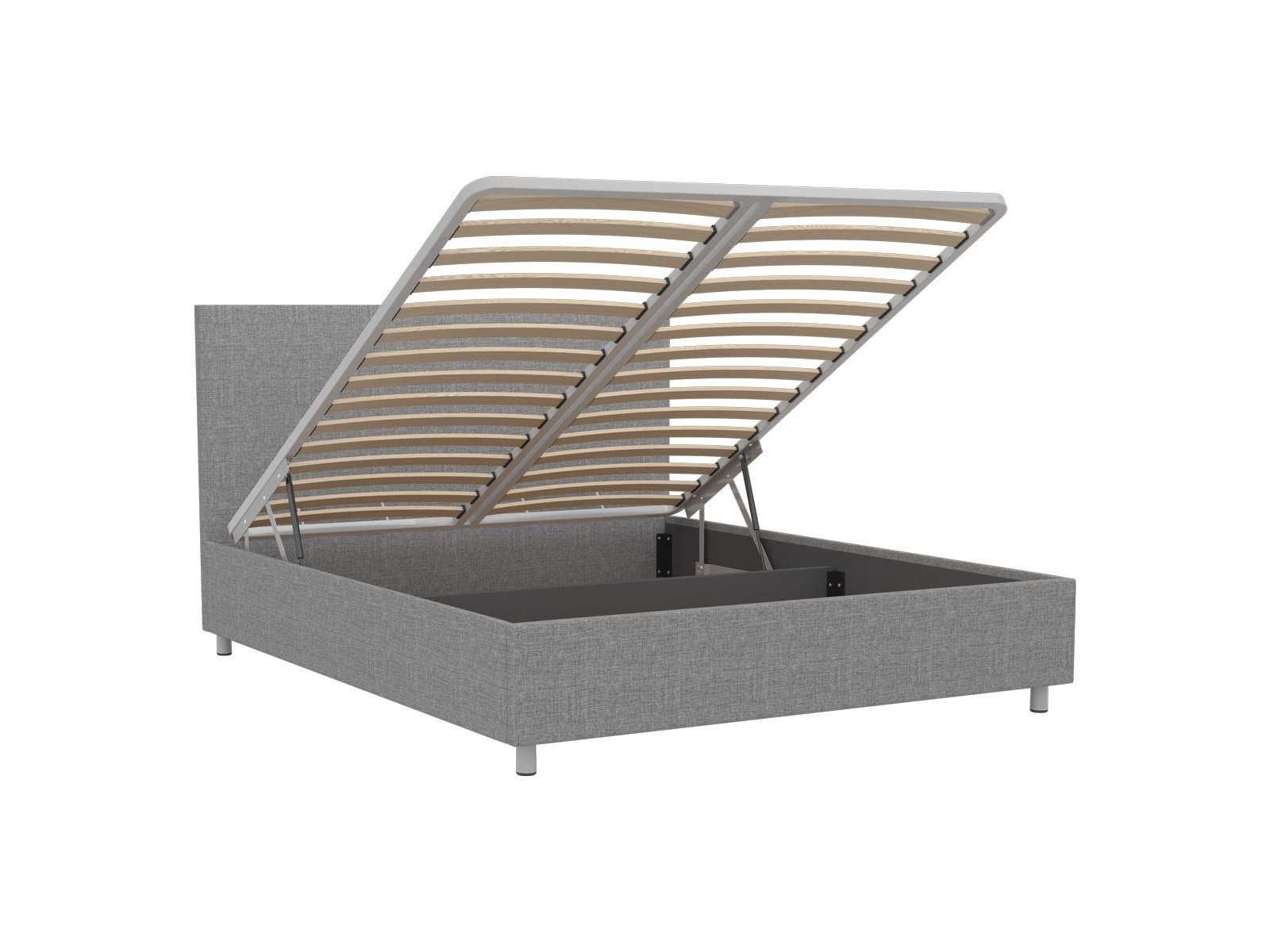Кровать оснащена подъемным основанием с ламелями, под которым находится вместительный ящик для хранения. Рекомендуемая высота матраса от 13 см, вес матраса до 50 кг.