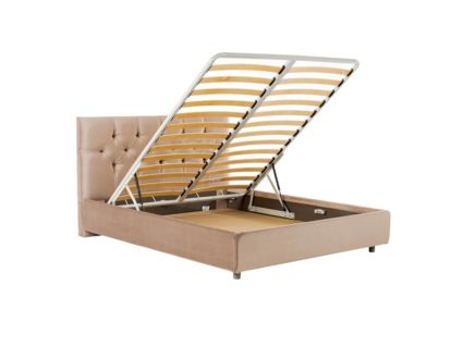 Кровать оснащена основанием с ламелями и подъемным механизмом. Рекомендуемая высота матраса до 30 см, вес матраса до 50 кг.