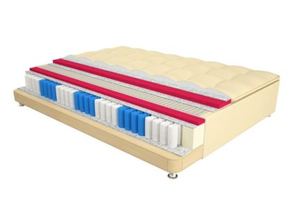 Очень стильный, высокий кроватный бокс, единственный самодостаточный, который не обязывает вас к покупке матраса. Универсальность данного бокса достигается за счет встроенных пружин в основании высотой 14 сантиметров и верхнего настила натуральной испанской соевой пены. Это значительно усиливает ортопедический и анатомический эффекты матраса. Но самым главным преимуществом топ бокса является топпер из двух сантиметров натуральной соевой пены. Благодаря такому сложному и практичному основанию бокс можно использовать без матраса.