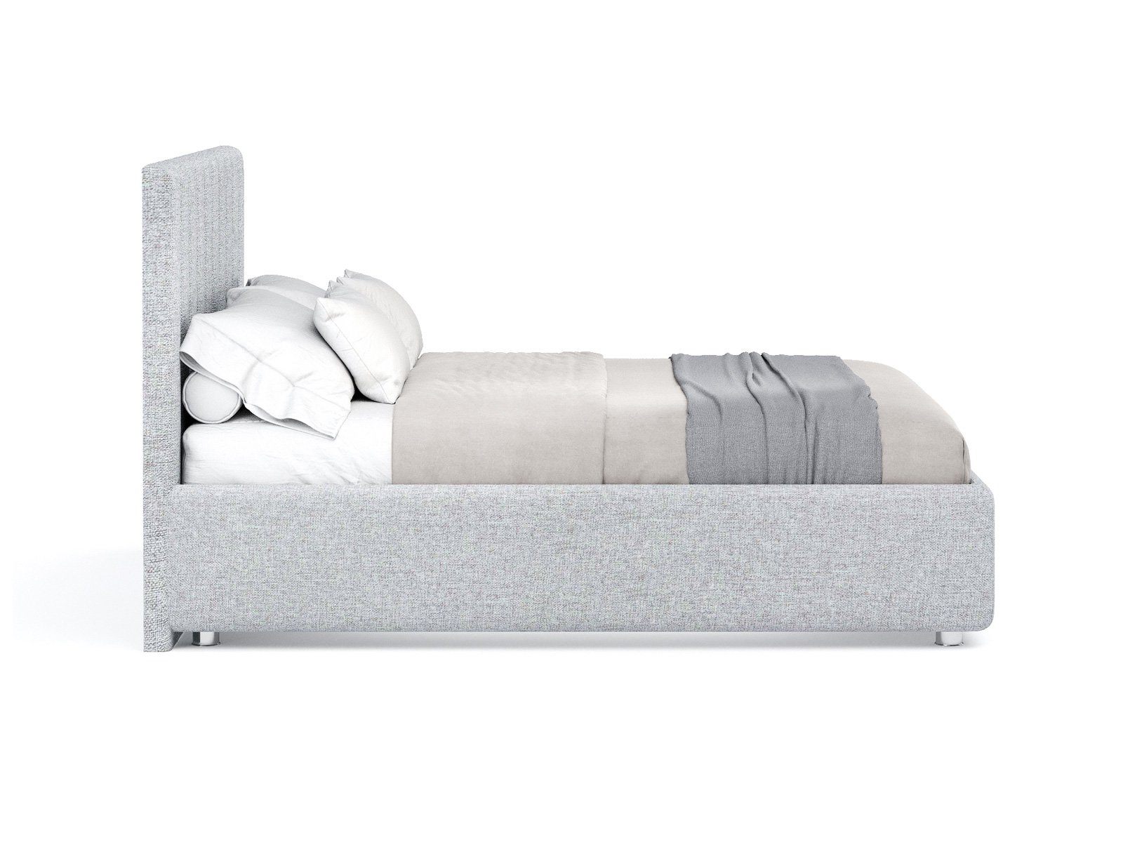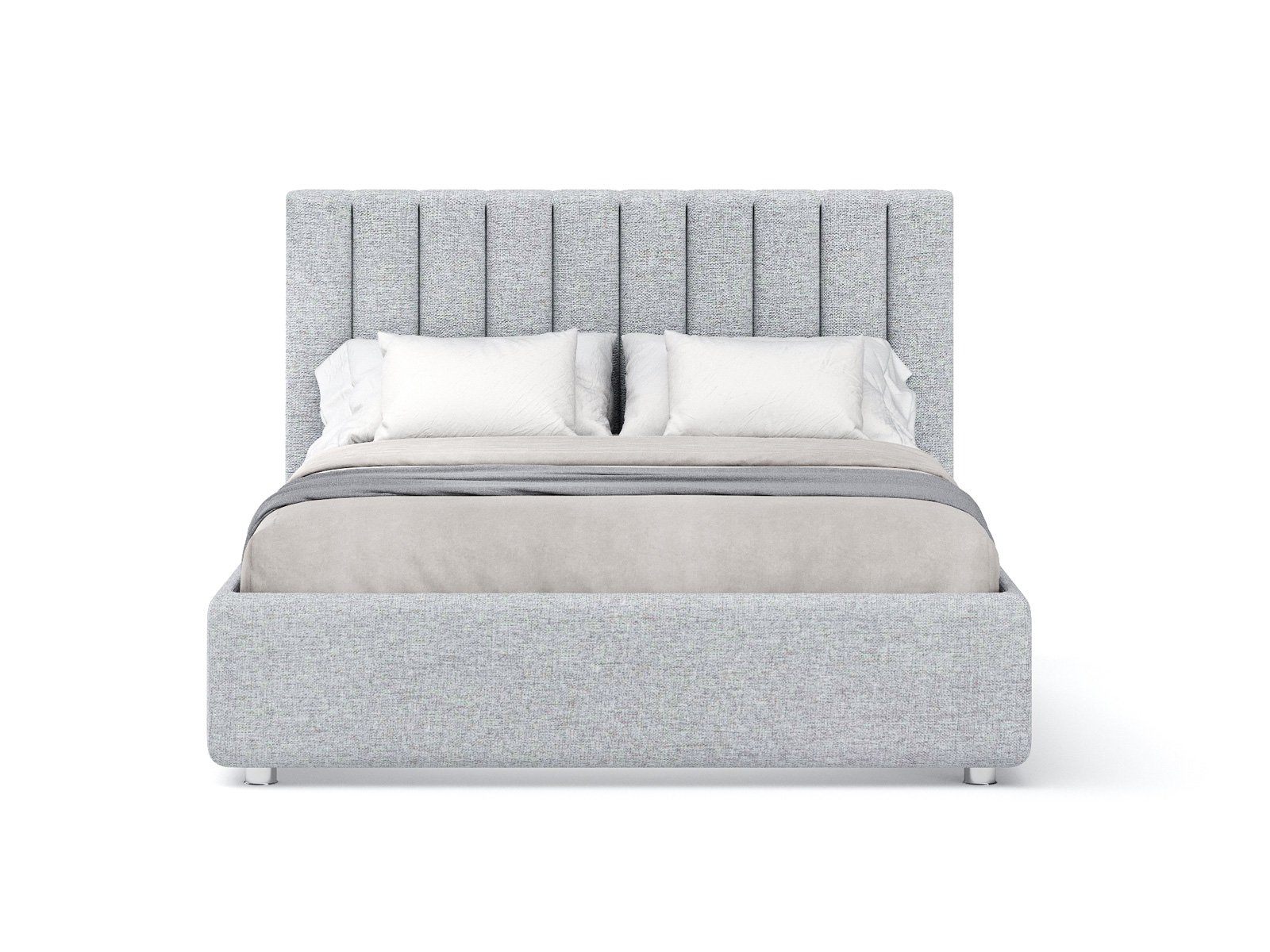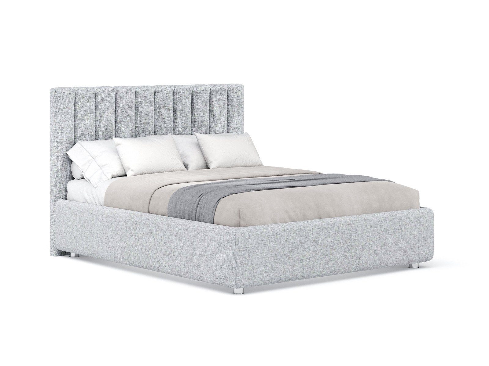 Кровать с мягким изголовьем, выполненным в виде 10 вертикальных панелей (вертикальная утяжка, всегда 10 шт независимо от размера спального места, с увеличением размера спального места увеличивается ширина панели), отличный вариант для спален с низкими потолками: вертикальный полосы на изголовье визуально вытягивают пространство.