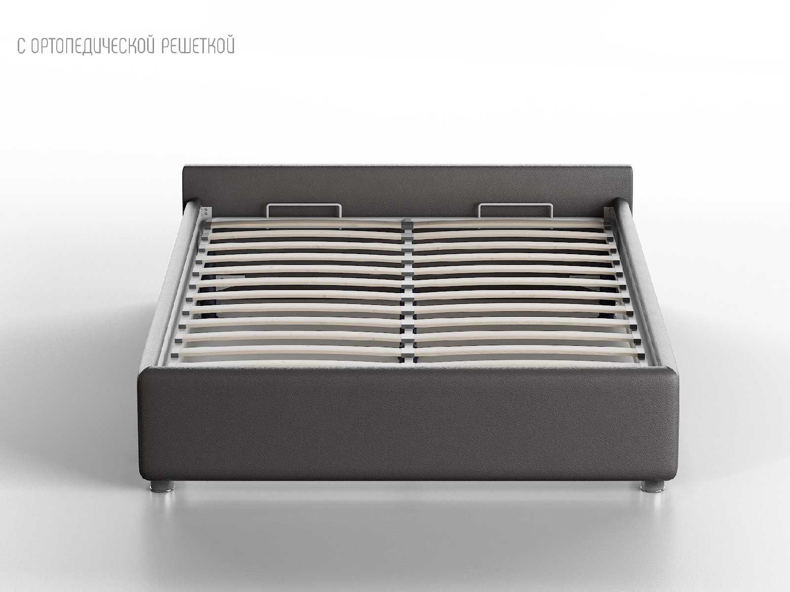Кровать укомплектована ортопедическим основанием на ножках с березовыми ламелями (расстояние между ламелями 7.8 см).