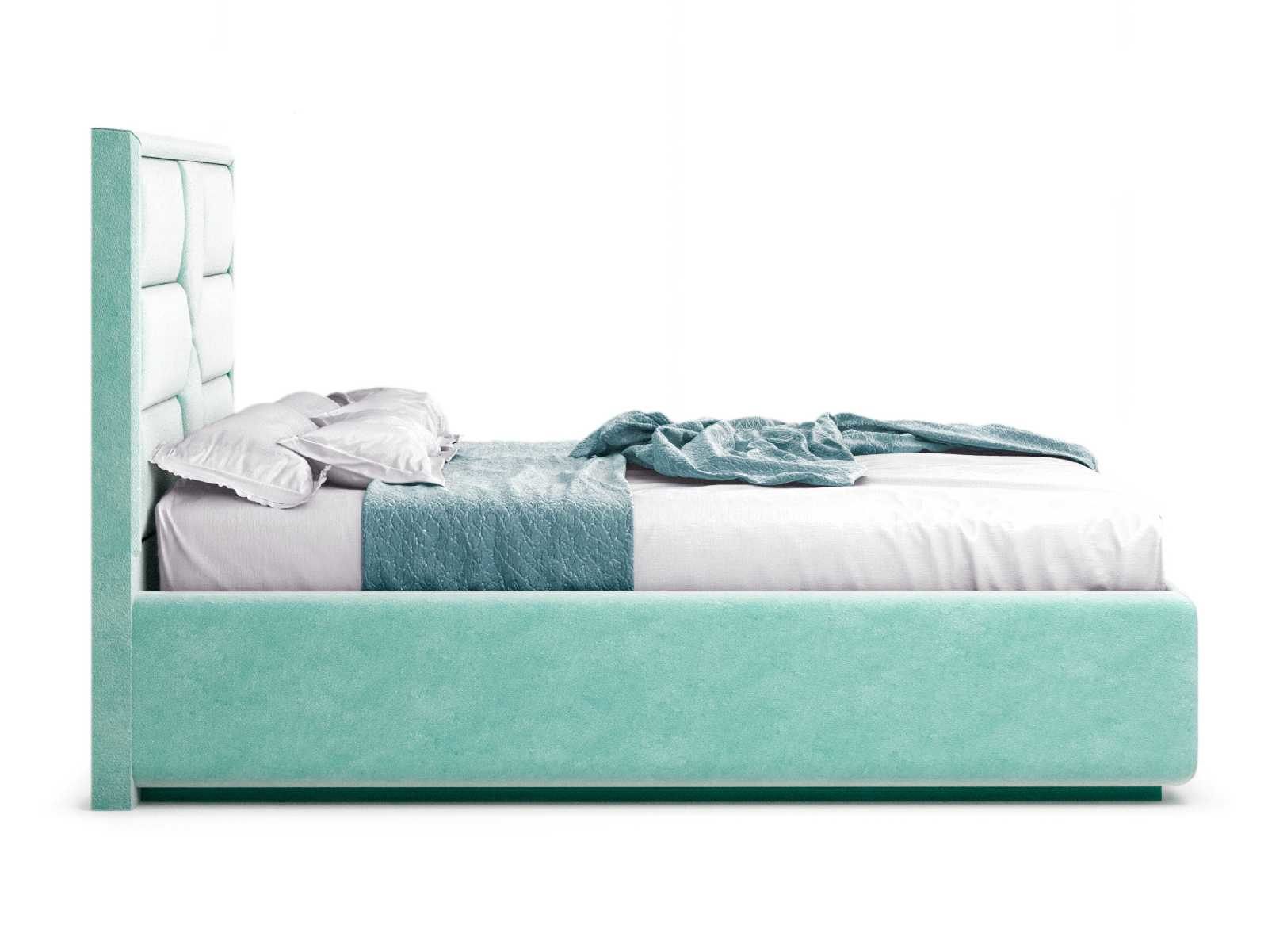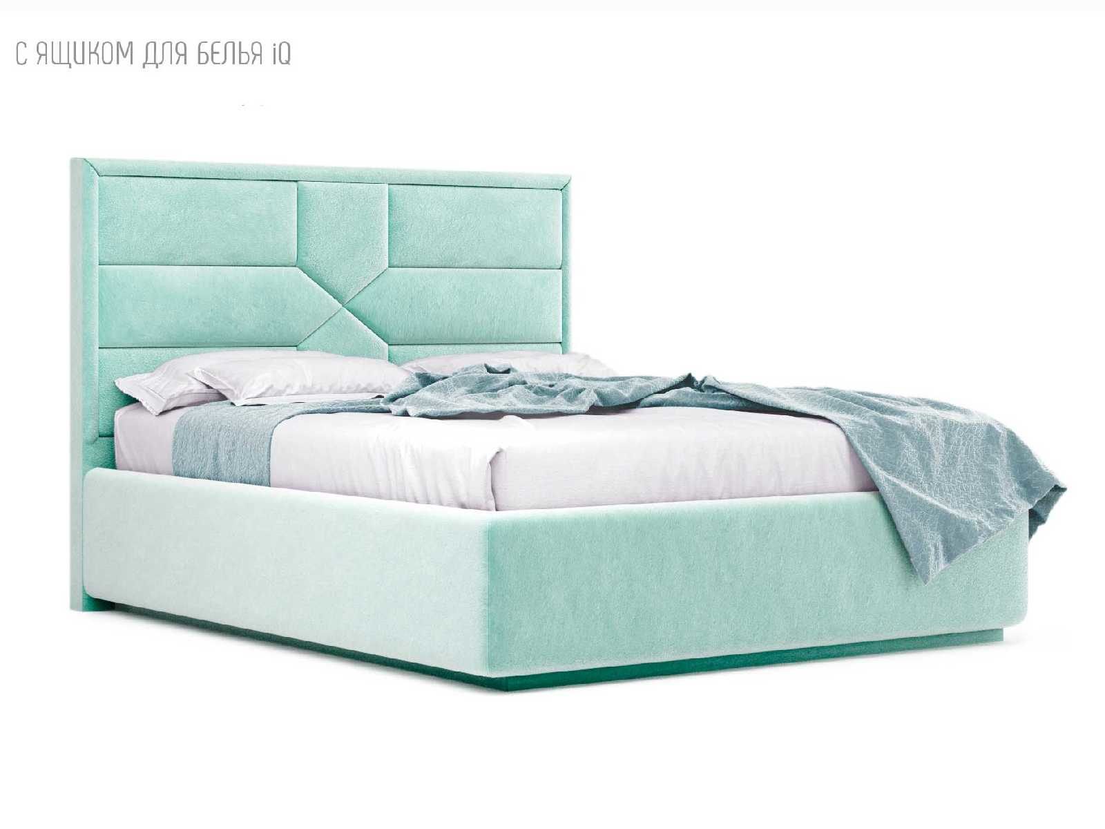 Кровать укомплектована IQ с подъемным механизмом и ящиком для белья без дна (дополнительная платная опция - дно к ящику IQ из HDF (ХДФ). Каркас кровати на цоколе, декоративный чехол на цоколе съёмный. Глубина ящика для белья - 30 см, без ограничения нагрузки на ящик.