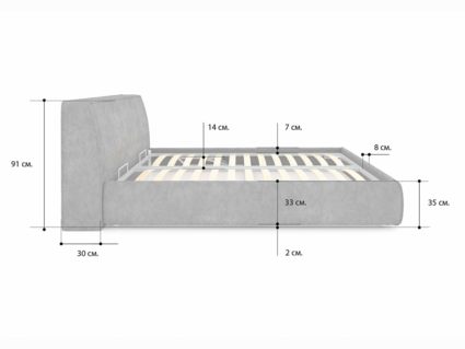 Кровать комплектуется металлическим основанием и подъемным механизмом со вместительным бельевым ящиком. Дно бельевого ящика легко сдвигается для обеспечения уборки под кроватью.