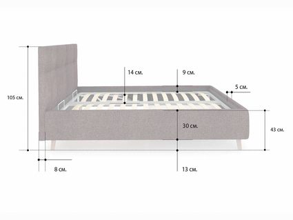 Кровать комплектуется металлическим основанием (без опор), которое имеет 13 рядов встроенных березовых ламелий на каждое спальное место, обеспечивая равномерное распределение нагрузки.