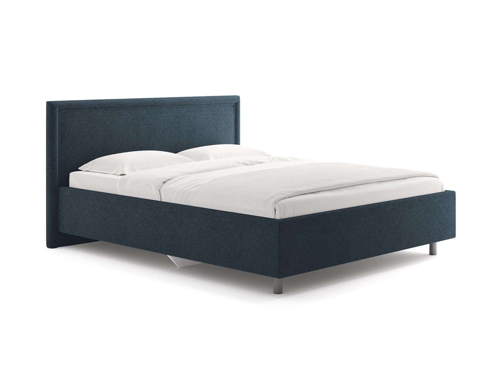 Элегантная интерьерная кровать с мягким изголовьем. Модель изготовлена из ДСП. Обратная сторона изголовья обита спандбондом, но её можно выполнить из основного обивочного материала. При необходимости кровать может быть укомплектована подъемным механизмом с бельевым ящиком или трансформируемым основанием Aquarius (размером 160-200).
