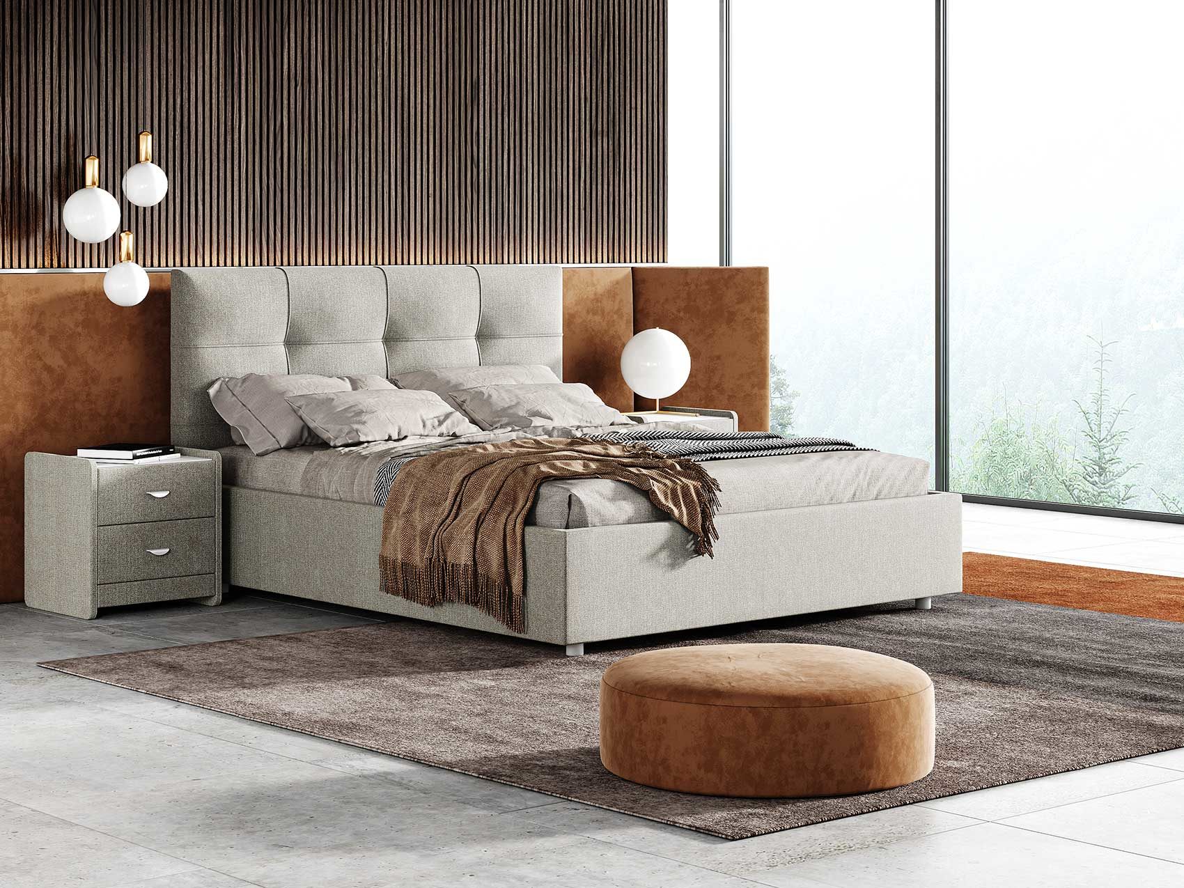 Современная кровать с эффектным декоративным кантом. Модель изготовлена из ДСП. При необходимости кровать может быть укомплектована подъемным механизмом с бельевым ящиком или трансформируемым основанием Aquarius (размером 160-200).