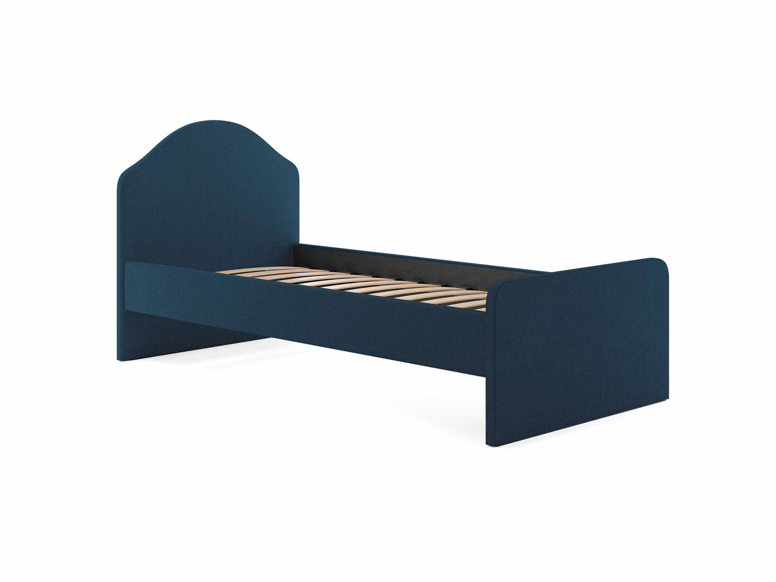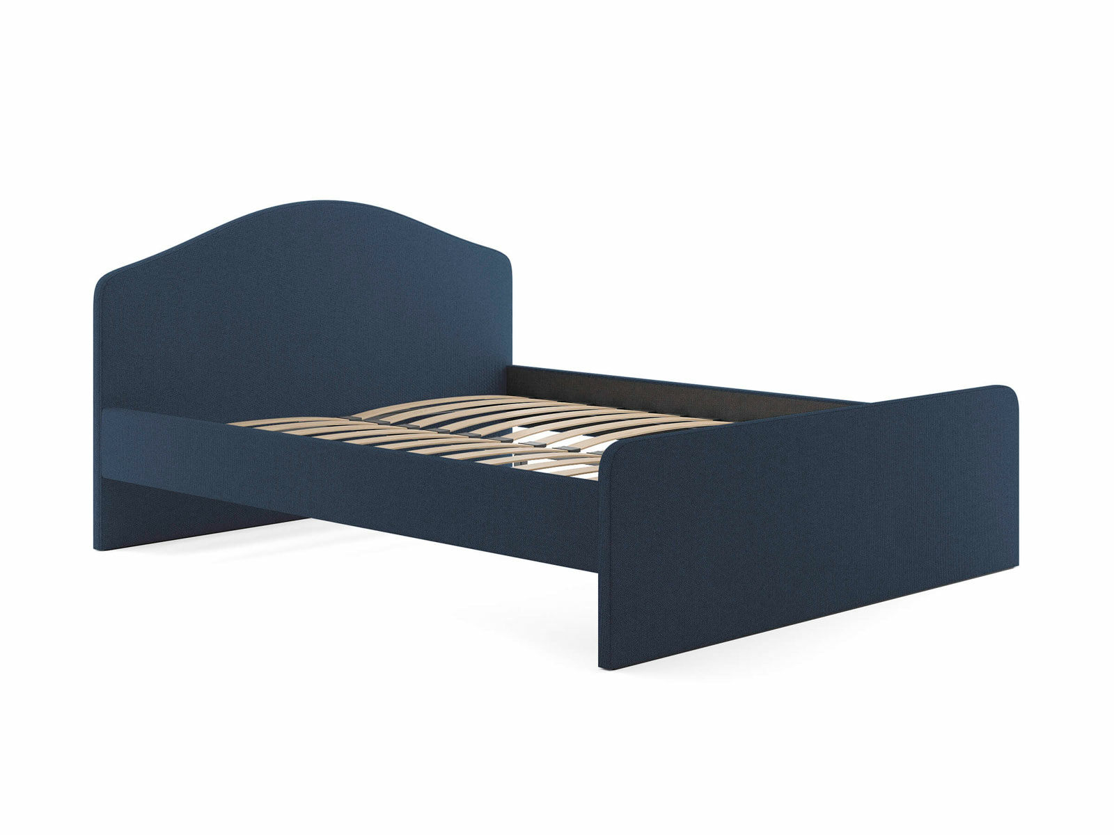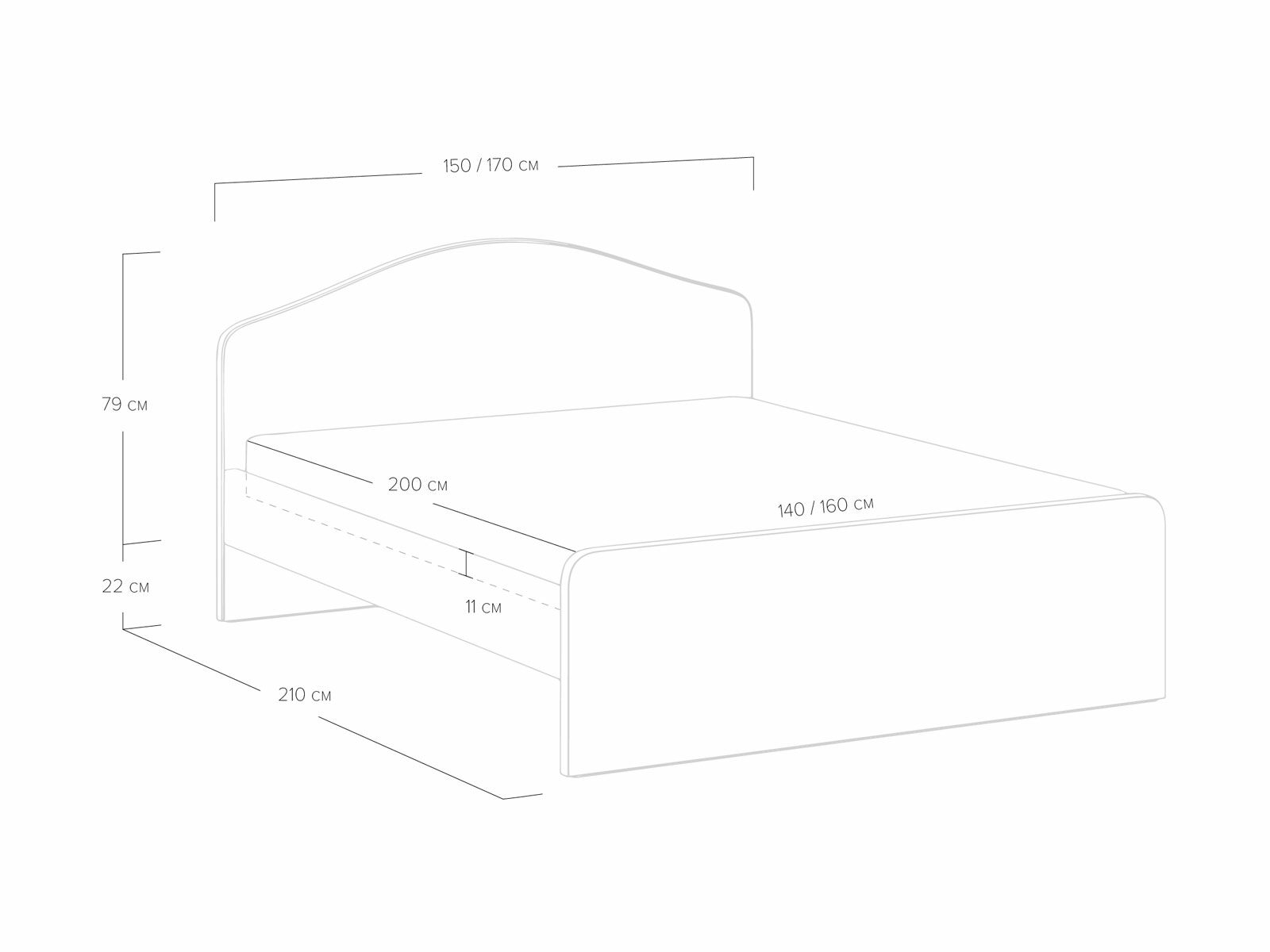 Мягкое изголовье с изгибом, плавные линии изножья, узкие царги делают кровать запоминающейся и уютной. Увеличенное расстояние до царг способствует легкой уборке под кроватью роботом – пылесосом, а также позволяет дополнительно приобрести выкатную тумбу или ящики для хранения вещей.