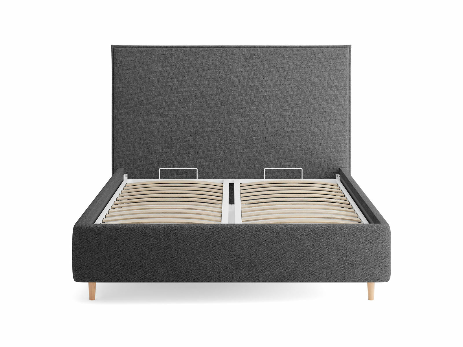 Кровать Eveline для современных интерьеров в скандинавском стиле. Выглядит эффектно благодаря мягкому высокому изголовью с декоративным кантом по периметру и опорам из натурального дерева. Модель будет смотреться выигрышно и актуально в интерьере, делая спальню уютнее, настраивая на отдых.