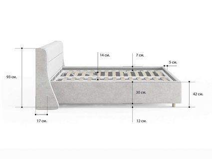 Кровать комплектуется металлическим основанием и подъемным механизмом со вместительным бельевым ящиком. Дно бельевого ящика легко сдвигается для обеспечения уборки под кроватью.