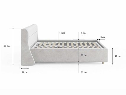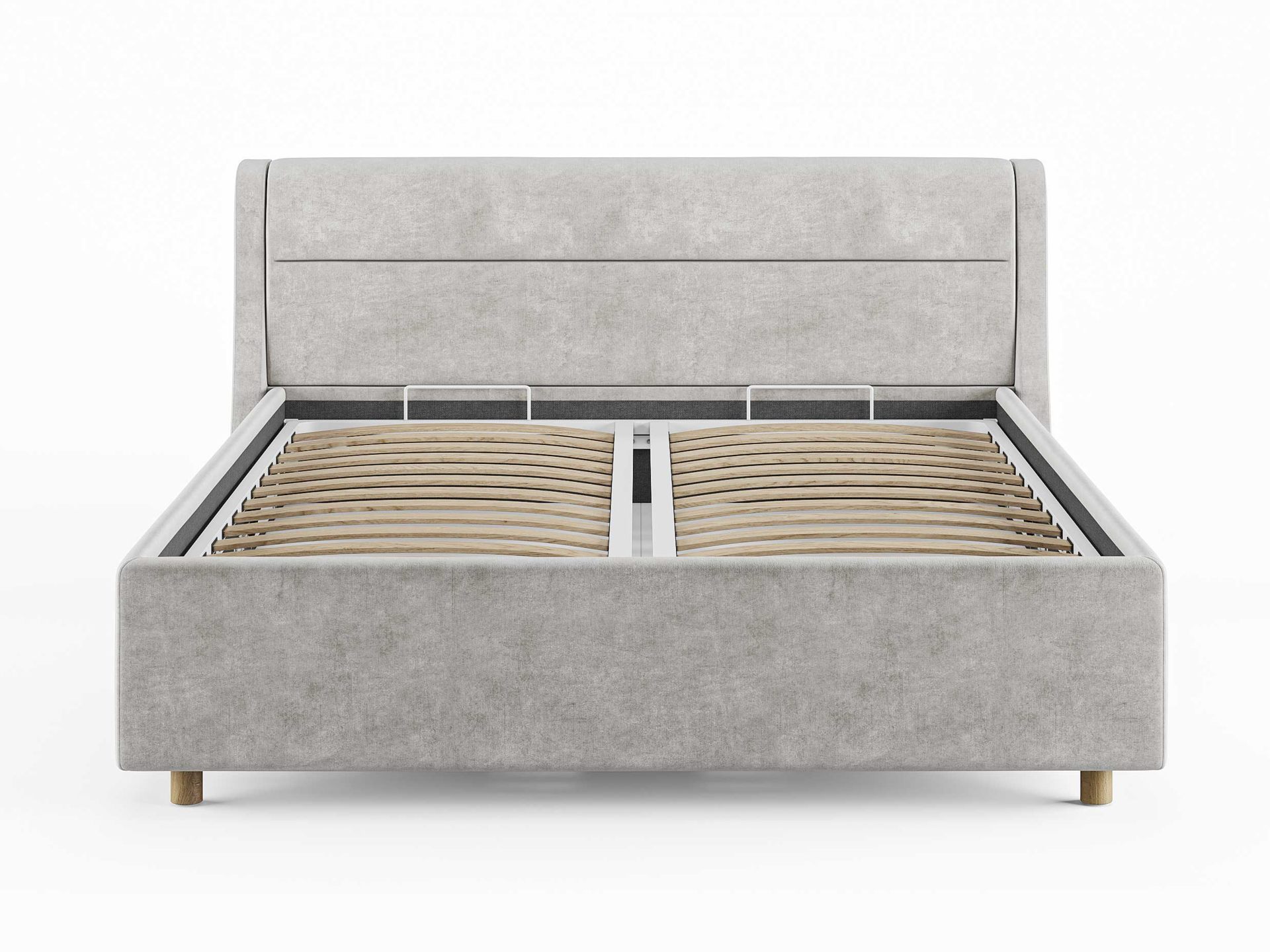 Кровать комплектуется металлическим основанием (без опор), которое имеет 13 рядов встроенных березовых ламелий на каждое спальное место, обеспечивая равномерное распределение нагрузки.