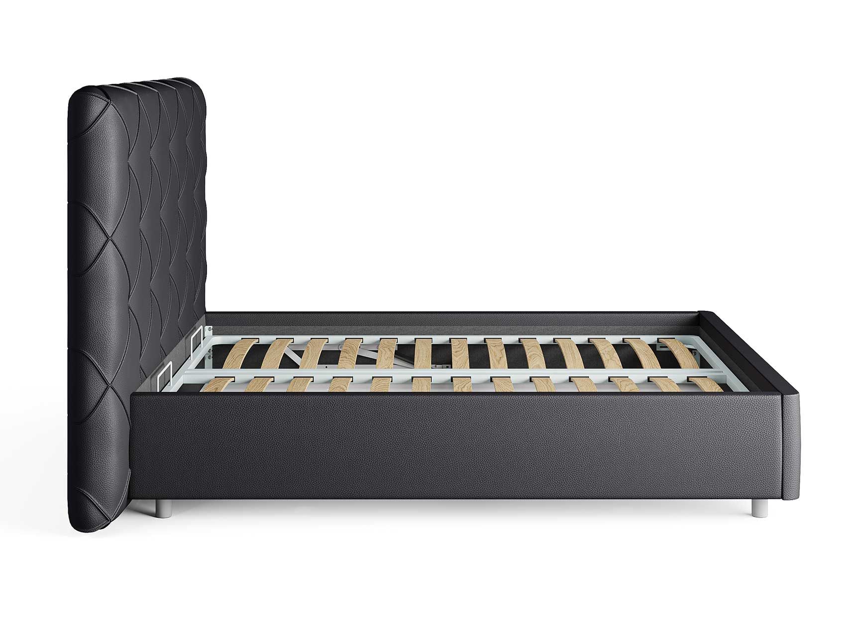 Кровать комплектуется металлическим основанием и подъемным механизмом со вместительным бельевым ящиком. Дно бельевого ящика легко сдвигается для обеспечения уборки под кроватью.