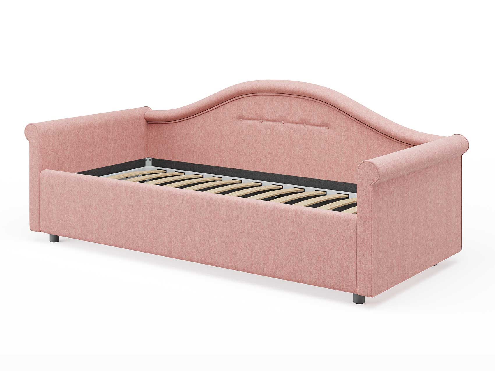 Кровать комплектуется металлическим основанием (без опор), которое имеет 13 рядов встроенных березовых ламелий на каждое спальное место, обеспечивая равномерное распределение нагрузки.