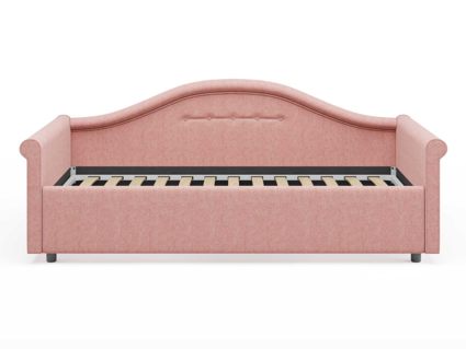 Кровать комплектуется металлическим основанием (без опор), которое имеет 13 рядов встроенных березовых ламелий на каждое спальное место, обеспечивая равномерное распределение нагрузки.