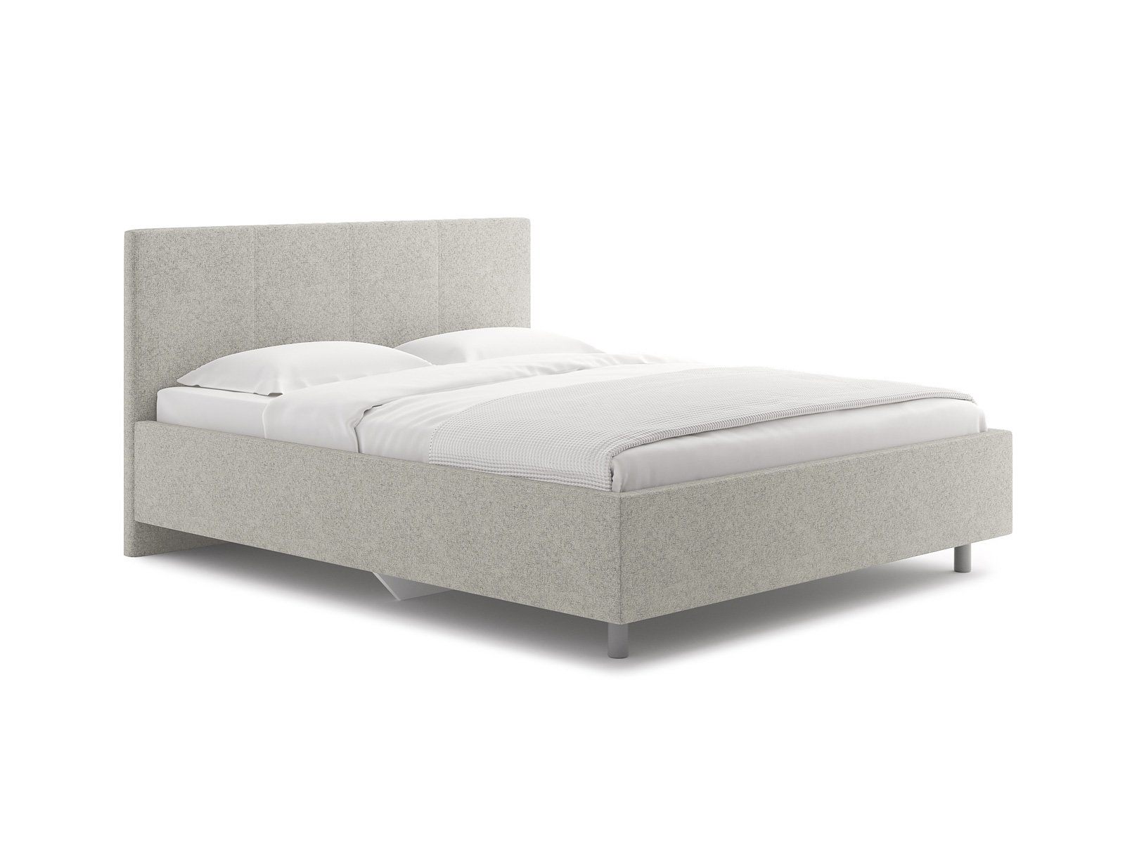 Элегантная кровать с изголовьем украшенным декоративной вертикальной строчкой. Модель изготовлена из ДСП.