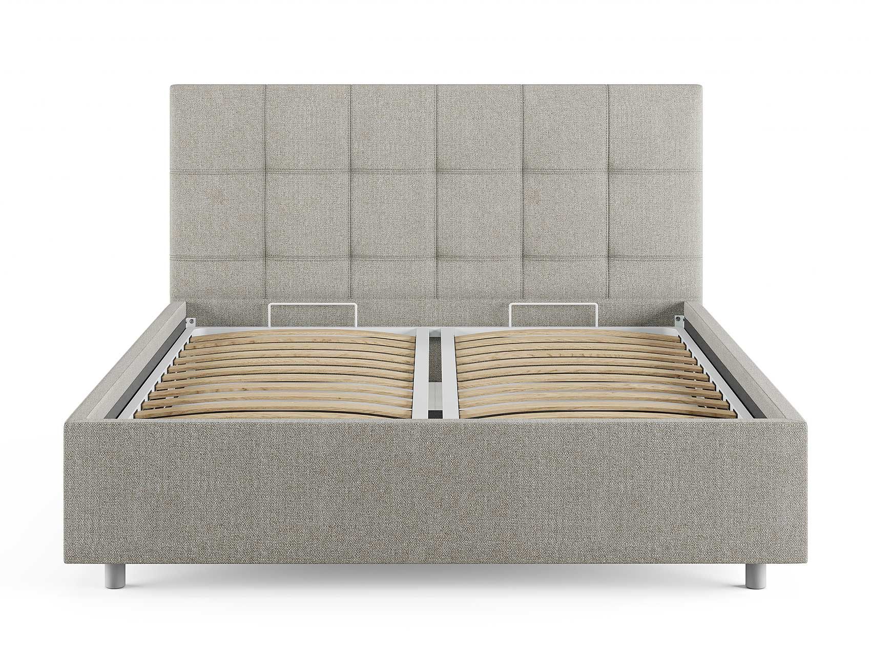 Кровать комплектуется металлическим основанием (без опор), которое имеет 13 рядов встроенных березовых ламелий на каждое спальное место, обеспечивая равномерное распределение нагрузки.