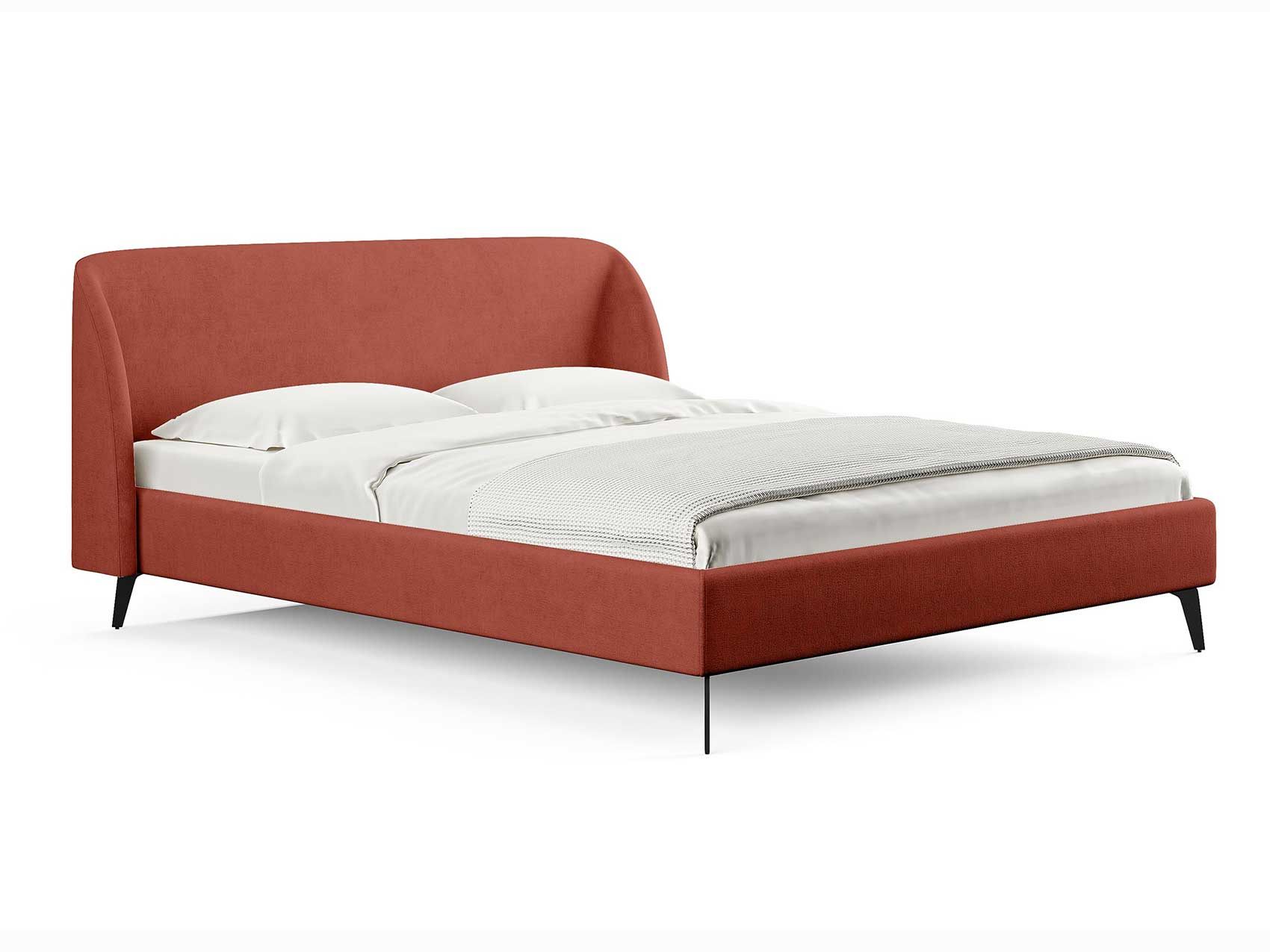 Кровать с закругленным изголовьем делает спальное место особенно уютным. Ее дизайн удачно подойдет для интерьеров в современном стиле, стиле минимализм и стиле mid-century модерн. Спинка кровати выполнена в основной ткани, благодаря этому ее можно установить в центре комнаты. Узкие царги и стильные металлические ножки делают кровать легкой и лаконичной. Кант на изголовье выступает в качестве декора, подчеркивает ее выразительность. Увеличенная прочность кровати достигается за счет металлического каркаса по периметру. Расстояние от пола до царг способствует легкой уборке под кроватью, в том числе роботом – пылесосом.