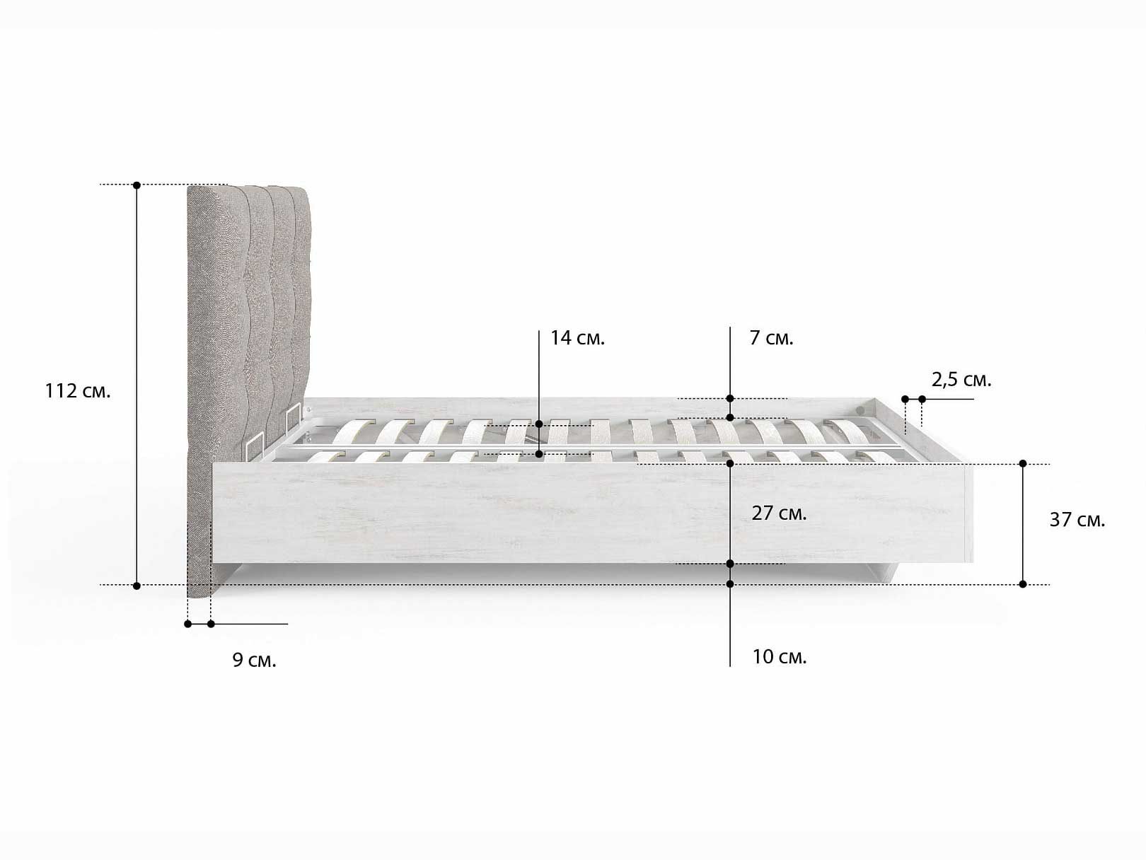 Кровать комплектуется металлическим основанием и подъемным механизмом со вместительным бельевым ящиком. Дно бельевого ящика легко сдвигается для обеспечения уборки под кроватью.