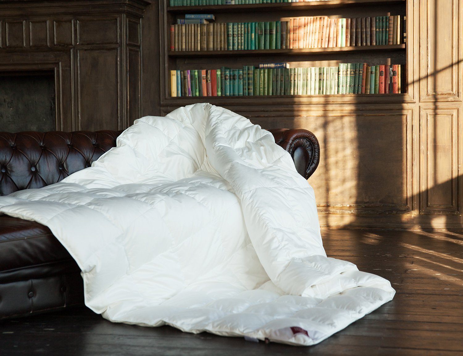 Благородный блеск гладкого сатина цвета экрю в сочетании с превосходным гусиным пухом превращают постельные принадлежности в настоящий предмет роскоши. Очищенный отборный гусиный пух категории “Экстра” с высоким коэффициентом упругости (Fill Power 850 ед) придает подушкам превосходные ортопедические свойства, мягко разгружая и поддерживая шею во время сна. Кассетные одеяла ручной работы, состоящие из отдельных box-кассет, распределяют пух равномерно и делают одеяла легкими и воздушными, но невероятно теплыми. Стирка при температуре до 30°С.