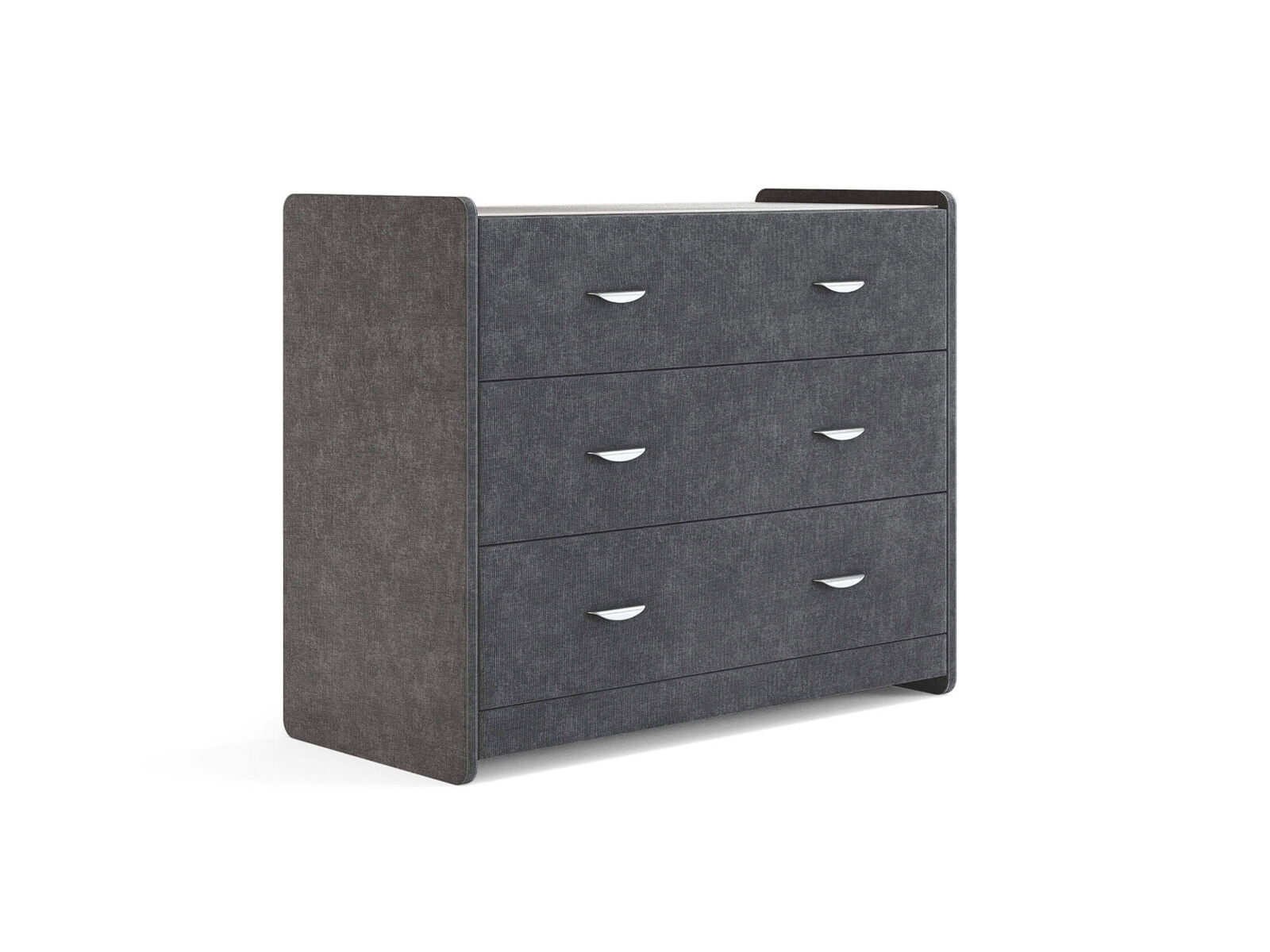 Современный и элегантный комод отличается повышенным удобством. Фасад ящиков и стенки комода покрыты обивочным материалом и выполняются в 43 вариантах цветового исполнения. Для удобства использования и продления срока эксплуатации, рекомендуется использовать стеклянную накладку. Накладка используется в качестве столешницы для тумбы и защищает ее от повреждений и загрязнений. Стеклянная столешница заказывается дополнительно.